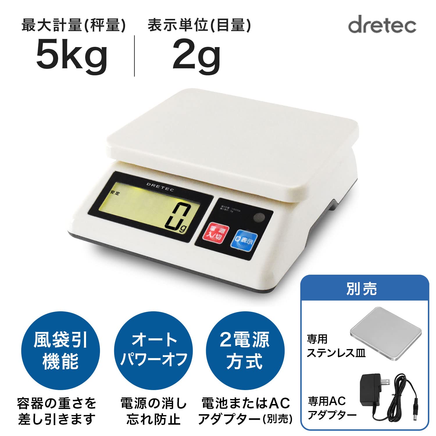 ドリテック(dretec) 台はかり 業務用スケール 特定計量器準拠 2g単位/5㎏まで 防滴仕様(IPX2) 足の高さで水平調整可能 デジタルはかり キッチン スケール 業務用