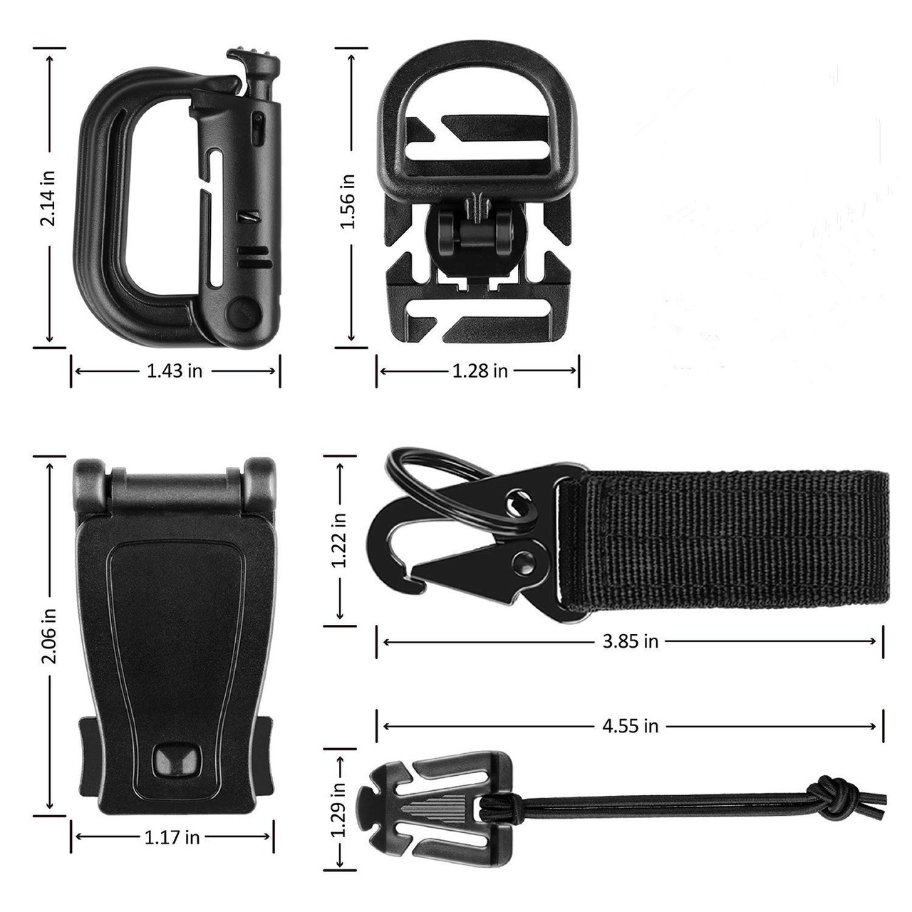 Molle ズ アルミ合金 ウェビングキーチェーン:登山やフィッシングなどアウトドア場合のに最適です。モールウェビングに取り付けておくことで、キーホルダー、帽子、グローブなどちょっとしたものをつるせる、ポーチなどを簡単に装着できる、余分なベルトを固定できる、便利なアイレムです。