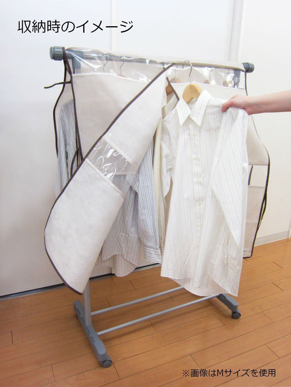 東和産業 衣類 収納袋 Poleco ハンガーラック カバー ダブルバー アイボリー