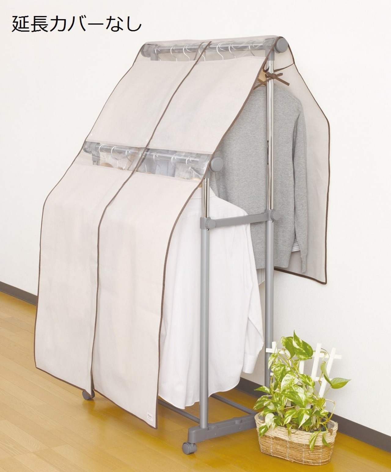 ●延長カバー付でワイド幅にも対応。●ハンガーラックに掛けた衣類をホコリから守ります●衣類を出し入れしやすい、片面中央開き式です