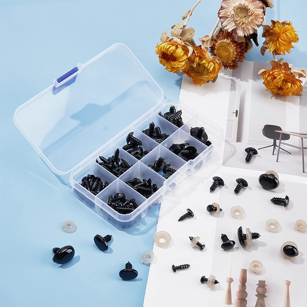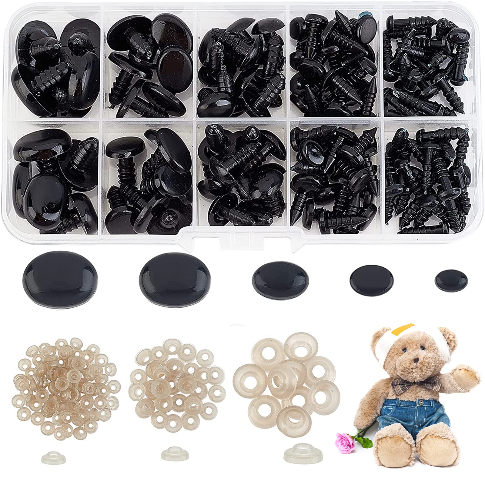 SUPERFINDINGS 楕円形 さし目 ぬいぐるみ目 動物 プラスチック 犬の鼻 125個入り プラスチック 6/8/11/14/17mm ブラック 5サイズ 目玉さし鼻 ワッシャー付きプラスチック安全目 ドールアイ ドールメイキング クラフト 手芸パーツ 手作り DIY人形制作キット