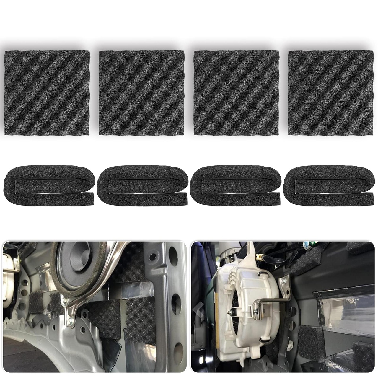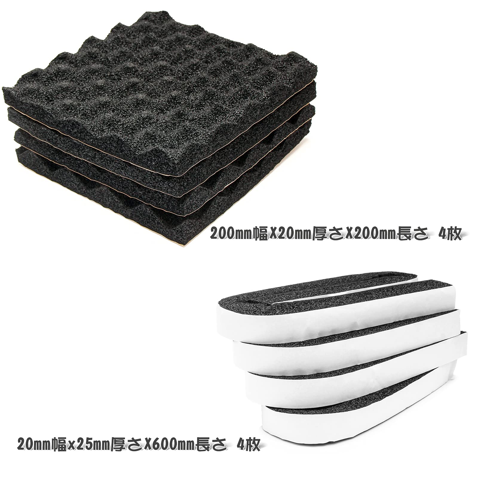 ZHUBANG スピーカー背面吸音材(200mm 幅 x 20mm 厚さ x 200mm 長さ)4枚 防音テープ (20mm 幅 x 25mm 厚さ x 600mm 長さ)4枚 合計8枚セット デッドニング マイク置き 粘着付