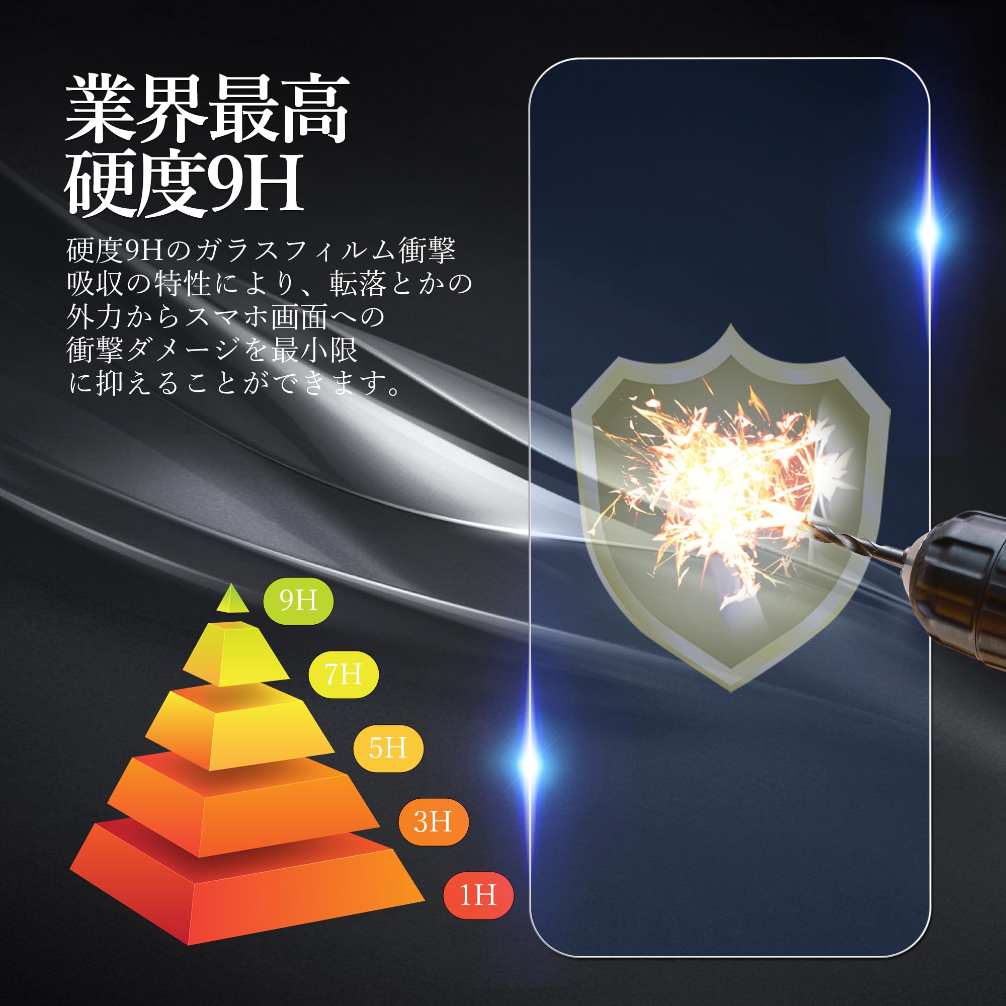 ○ 9H硬度&飛散防止 ○: 業界最高表面硬度9Hのガラスフィルムで、日常の様々な物質からスマートフォンを守ります カバンの中の鍵や小銭、砂利や砂など日常の様々な傷から守ります。万が一フィルムが破損した場合でも、破片が飛び散りない、破片によっての画面や人を傷つける心配がありません