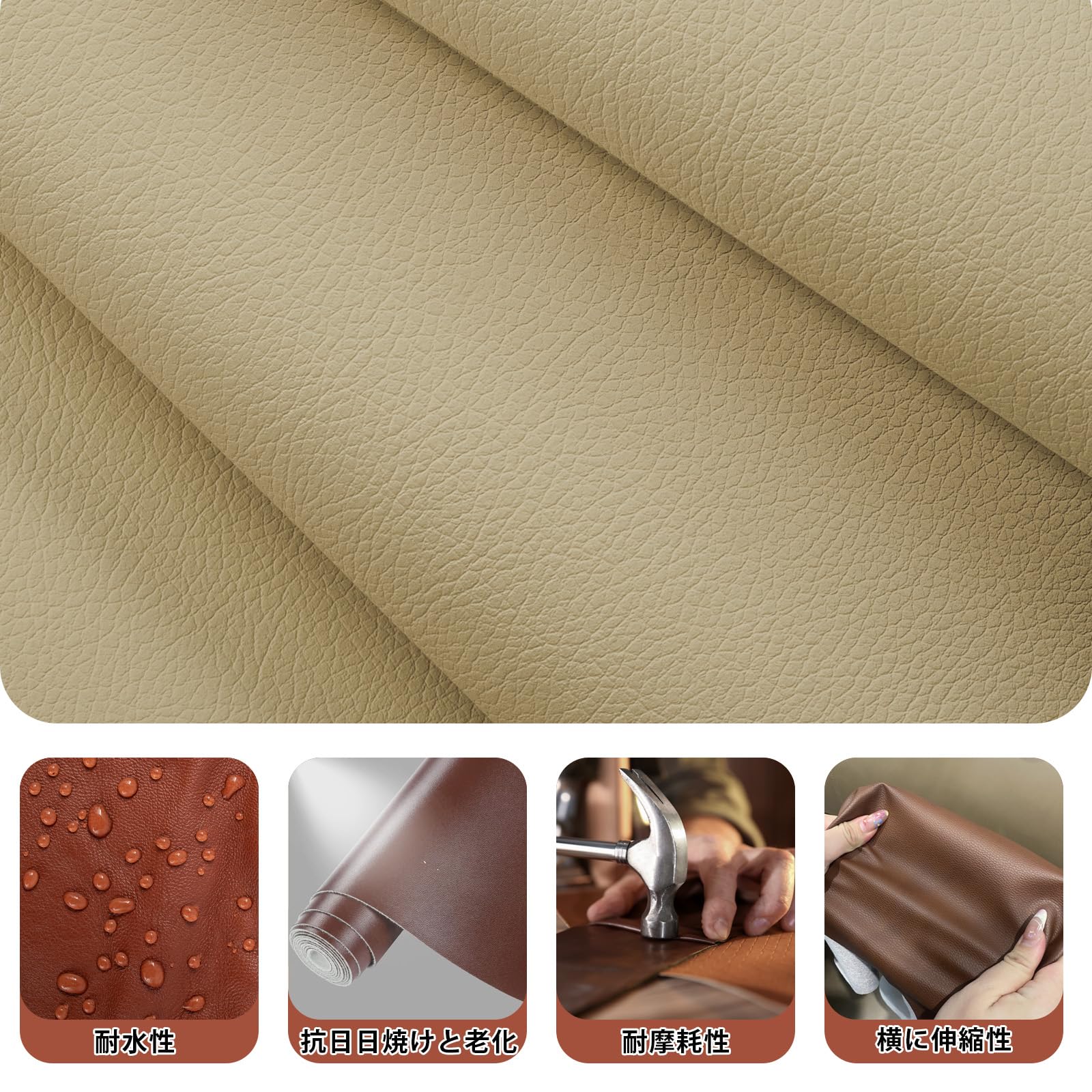 注意:人工皮革シートは折り畳み配送のため、開封時に折り目が付いている場合があります。風通しの良い場所で平らに伸ばすと軽減されます。