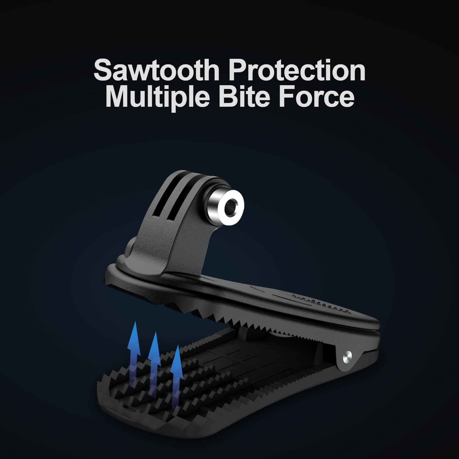 【二重保護】:大きなクランプ力と鋸歯付き、大人には両手に力を入れてクリップが開けられるため、バックパックから落ちる心配がありません。登山、ハイキング、歩行などの激しくない運動に適用する。(ご注意:初めて使用された場合、360度回転ところは少しきつく、数回回転すると少し緩やかになります。また、カメラをインストールすると、回転し易いです。)