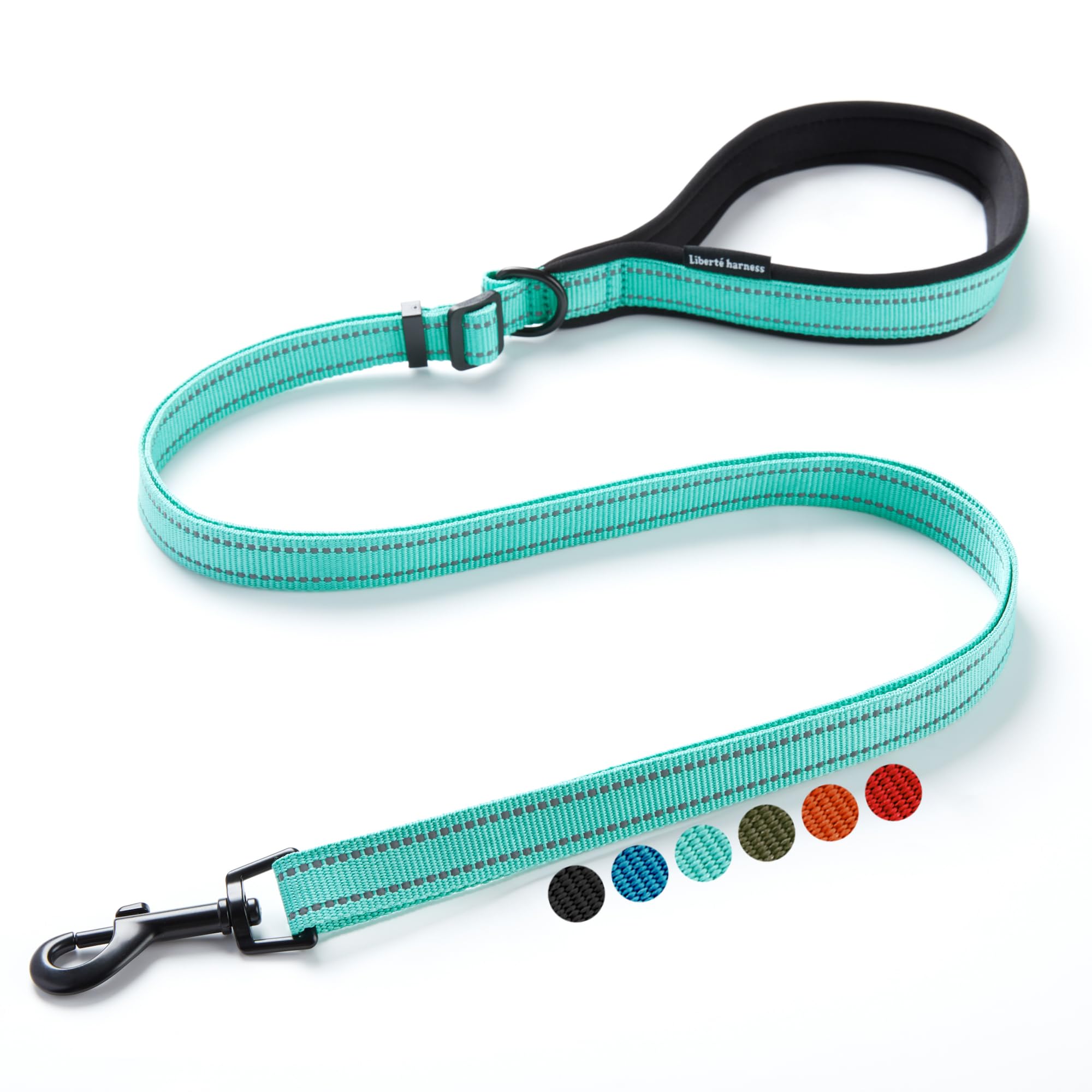 Liberte harness 犬用リード 1本で110〜180cmまで長さ調節 小型 中型 大型犬対応 40kgまで 2cm幅 反射材採用 クッション付きハンドル 小物取り付け可能 (ターコイズ)