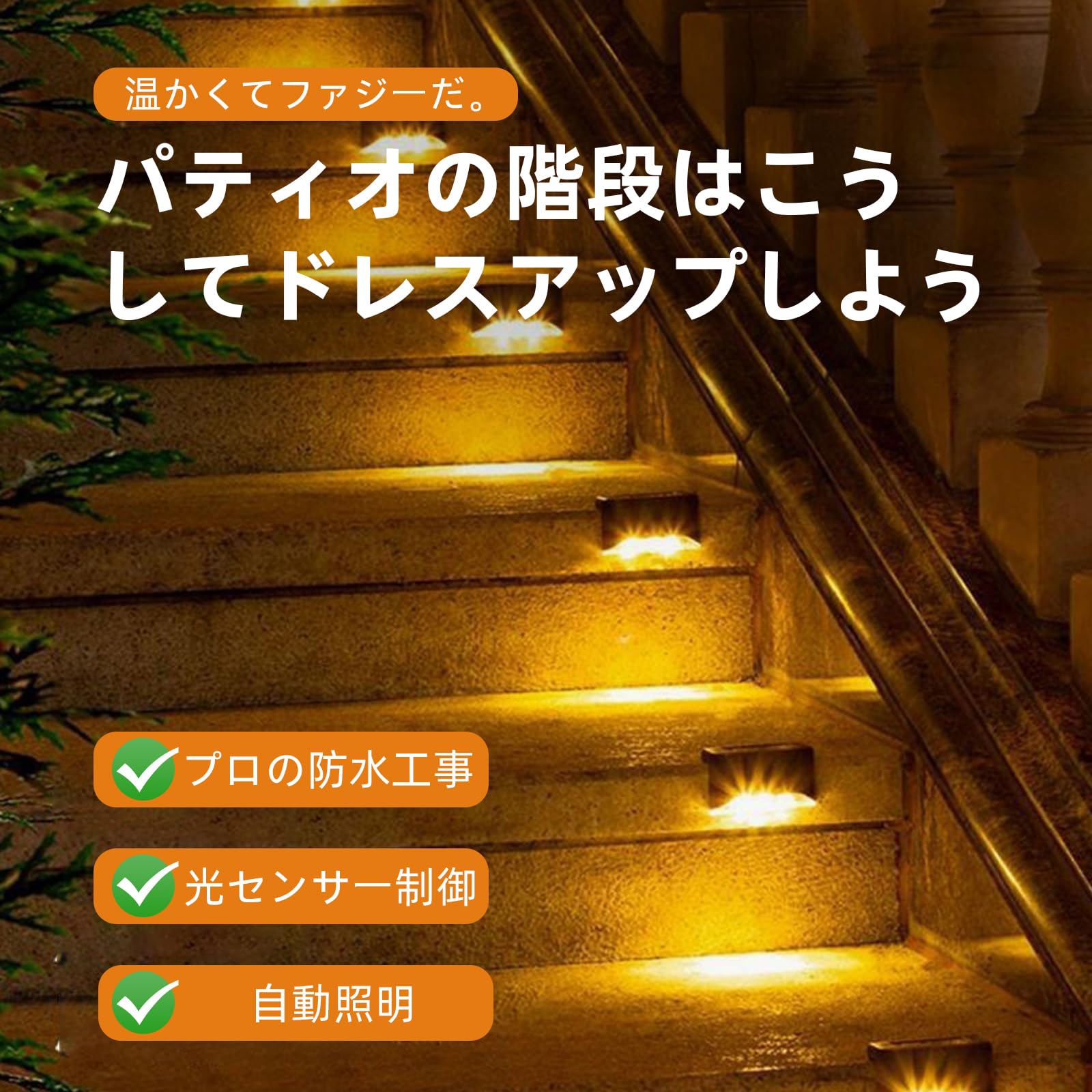 【プレミアム素材】硬質ABSシェルと高品質ソーラーパネルを使用したソーラーデッキライトは、悪天候にも対応できるIP65防水性能を備え、雨、風、雪の日にも耐えられるように設計されています。 【自動点灯】ソーラーランプは光センサーを搭載しており、日中および良好な光条件下で充電し、夜になると自動的に点灯します。 オン/オフスイッチがないので、毎日自分でライトを点灯する手間が省けます。絶縁体のタブを外すだけですぐに使用できます。 周囲の明るさを自動的に感知し、夜間や暗い環境でも発光します。 【暖かい雰囲気】ソーラーデッキライトは夜の階段、玄関、フェンス、庭を美しく照らし、人々に暖かくリラックスした感覚を与え、快適な環境を作り出します。 ソーラーライトは暖色の光を使用し、人々を精神的に最大限にリラックスさせ、暖かい雰囲気を作り出します。 【幅広い用途】屋外装飾照明に広く使用されています! 階段、玄関ホール、駐車場、軒/フェンス/中庭、ガレージ、庭園、遊び場、公園、中庭などに適しています。 装飾ランプとしても最適です。 夜になるとライトが自動的に点灯するので、安全性が向上し、生活に楽しみももたらします。 【取り付け簡単】デッキライトパッケージにはネジと両面テープが付属しており、取り付けが簡単です。 配線や電池を購入する必要はありません。 様々なシーンにも設置可能です。 ネジと両面テープが付属します。 手のひらサイズで女性一人でも簡単に素早く設置できます。 また、太陽エネルギーを最大限に利用するために、直射日光の当たる場所に設置するようにしてください。