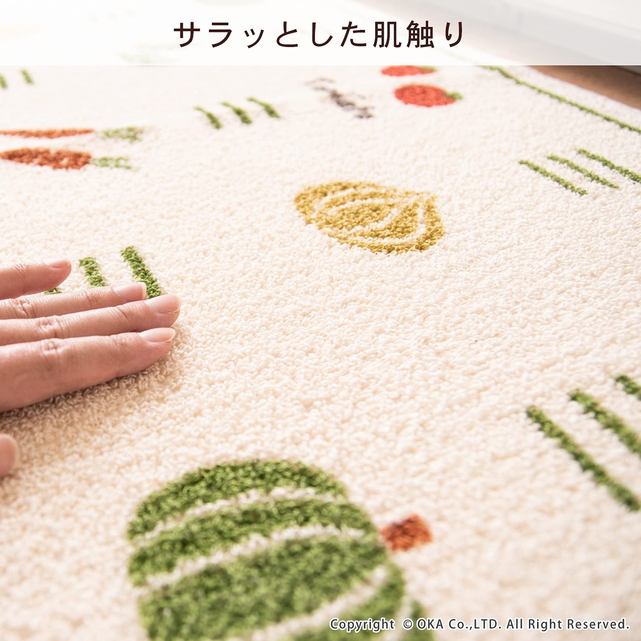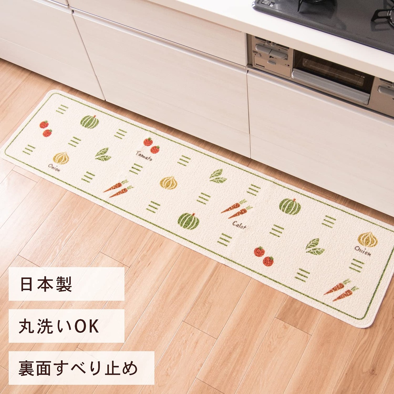 野菜らしいカラーにこだわり、キッチンにぴったりのマットに仕上げました。