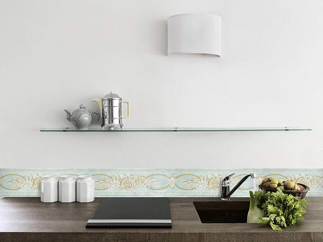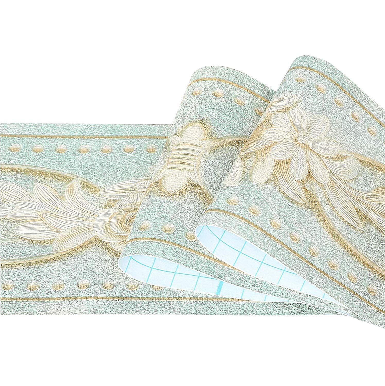 Yoillione トリムボーダー マスキングテープ シール壁紙 インテリアシール 浮彫 凹凸 牡丹 リメイクシート キッチンシール 北欧 防水剥がせる ボーダーテープ ウォールステッカー 花 3d 大きい 青 立体 トイレ 洗面所 リビング 玄関 【薄いグリーン 幅10.6cm×長5m】N