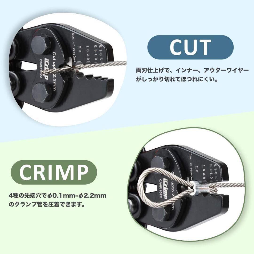アイクリンプ(iCrimp) ラチェット式 ハンドプレッサー アルミスリーブ かしめ機 ワイヤークランプカッター 圧着 切断 1丁2役! φ0.1mm-φ2.2mm対応 CWR1522