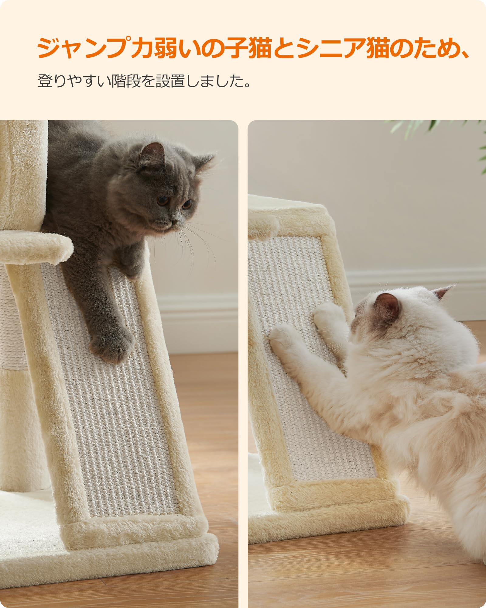 FEANDREA キャットタワー 大型猫 ハンモック耐荷重10KG 猫タワー 天然サイザル 広いハウス 多頭飼い 安定性 96cm PCT51MV1