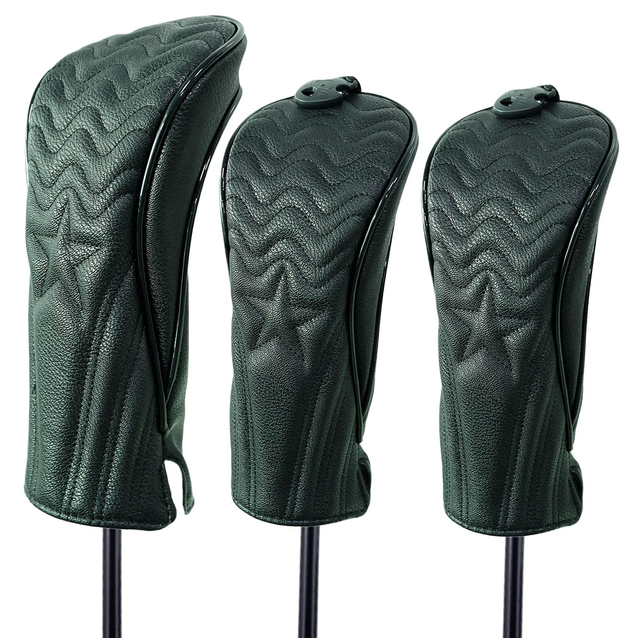 高級PUレザー ゴルフヘッドカバー ドライバー用 440cc 460cc ウッド用 ユーティリティ UT用 カバー スターSTAR 黒 白
