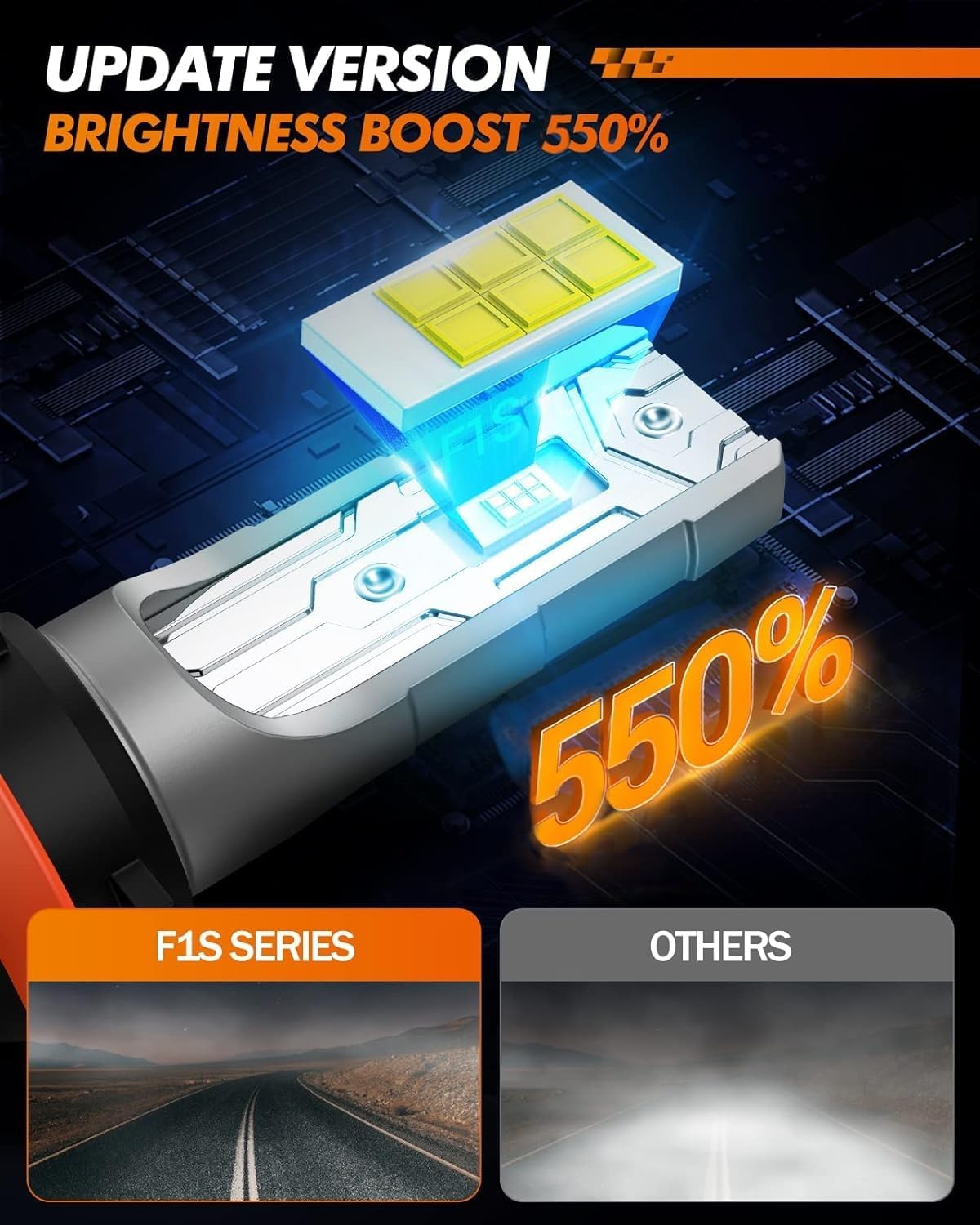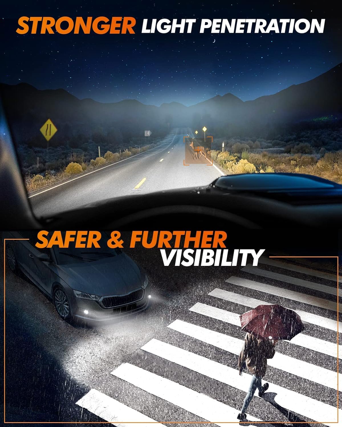 【より良く見える | 10000LM】:12個のCSP5530チップにアップグレードされ、10000LMの明るさを持ち、光の出力は従来のランプの550%アップです。 10000LMの強力な霧や雨を貫通する能力は、効率的なエネルギー消費と長持ちする品質と組み合わさっているため、どのドライバーの安全装備にも貴重な存在です。