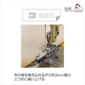ブラウスなどの布端を三つ折に縫える「家庭用三つ巻押さえ」