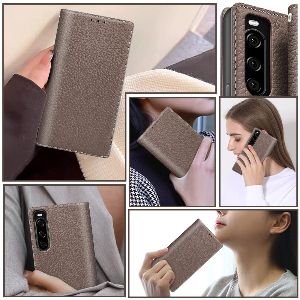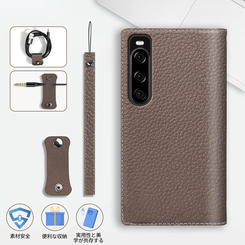 Xperia 10 iv 用の ケース 手帳型 SO-52C SOG07 ケース 高級牛本革 エクスペリア 10 iv 用の スマホケース マグネット式 携帯カバー 財布型レザー 手帳型カバー本革 スタンド機能 ストラップ付き カードポケッ トギフトボックス付き ブラウン×グレー