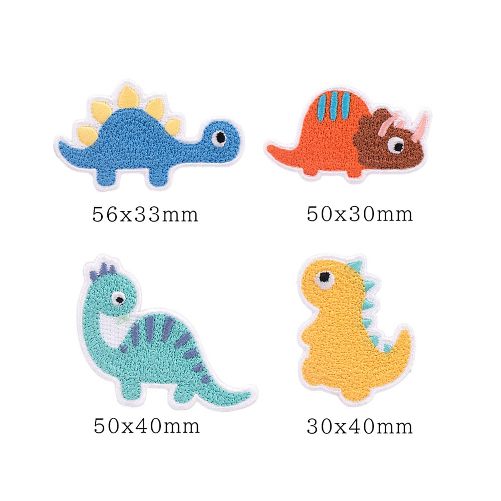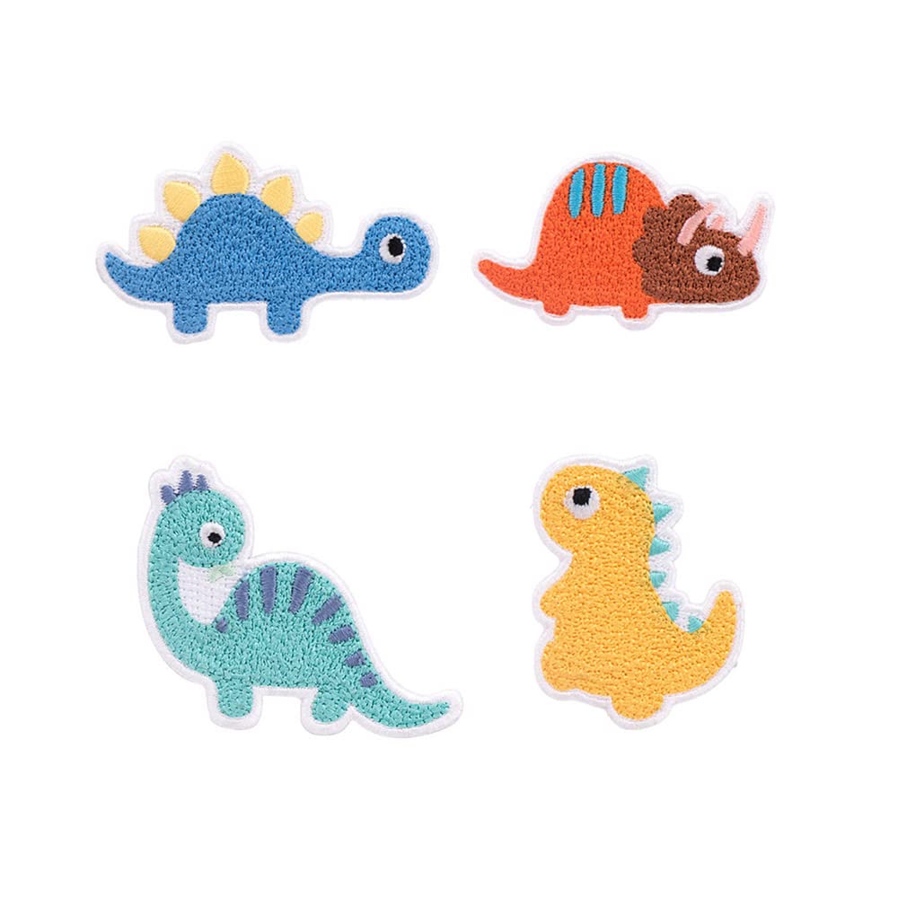 アイロン ワッペン 動物 アルファベット ベルクロ アップリケ おしゃれ 刺繍 入園 (恐竜 4点セット)