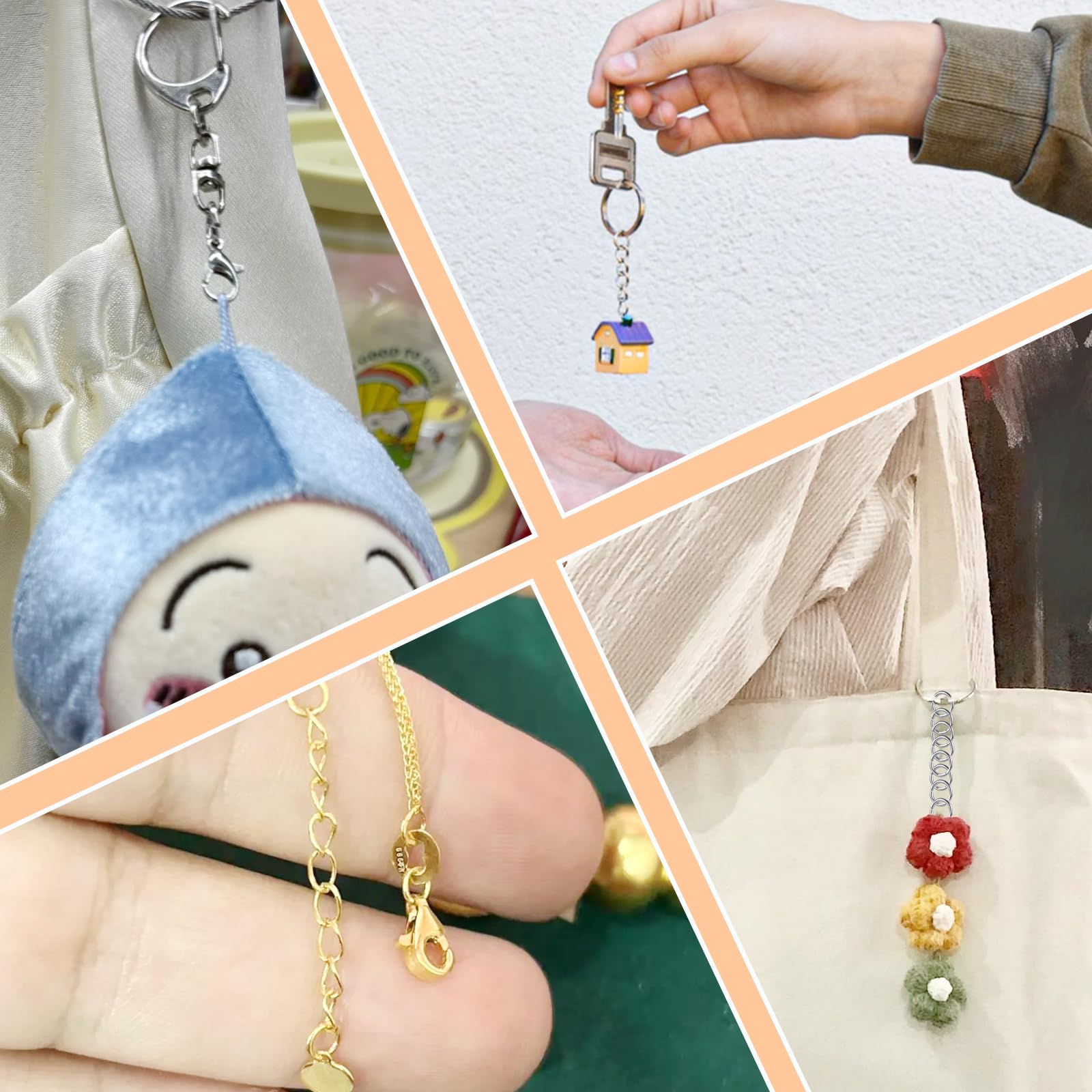 豊富な用途:これらのロブスタークロークラスプと丸カンは多用途で、ロブスタークラスプとオープンジャンプリングは、ネックレスやブレスレットの作成、ジュエリーの修理などのDIYプロジェクトに最適です。日常生活のさまざまなシーンでお使いいただけますので、携帯電話のストラップの作成、ジュエリーの修理、ネックレスのイヤリング、キーホルダー、その他の DIY クラフトなど