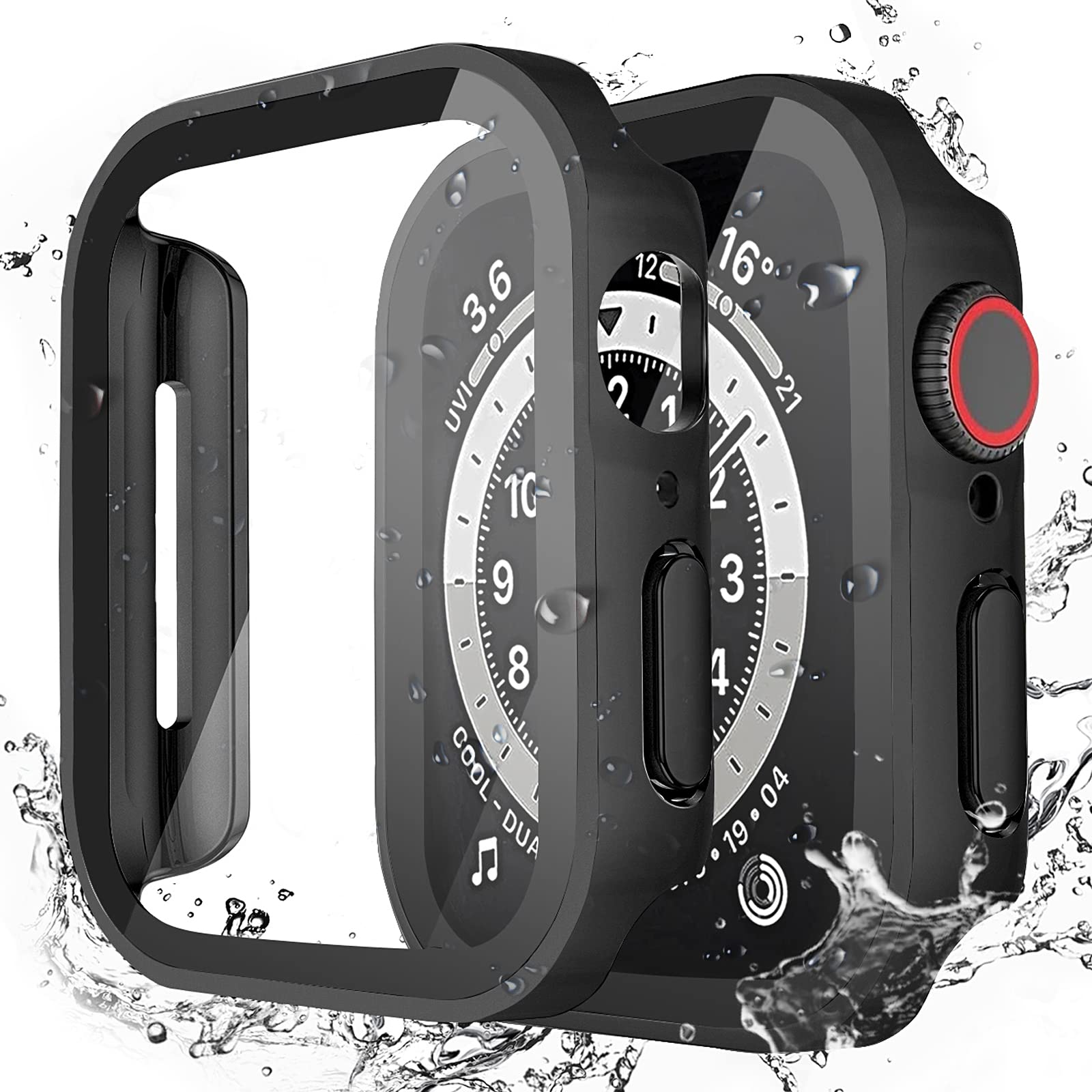 対応 Apple Watch ケース Series 11/10/9/8/SE/7/6/5/4 45mm アップルウォッチ用 ケース 防水 一体型 新デザイン 3D直角エッジ 超薄型 PC+ガラス素材 高透過率 対応 Apple Watch カバー 全面保護 装着簡単 高耐久 耐衝撃 ブラック