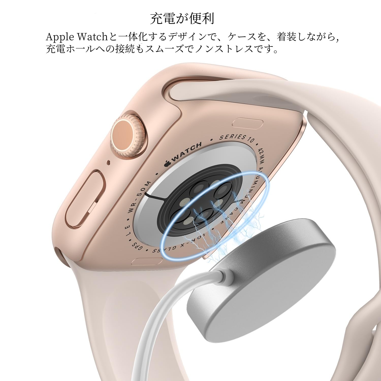 ULOE 対応 Apple Watch Series 11 (2025) Series 10 42mm用 ケース 対応アップルウォッチ 11/10 42mm 保護カバー ガラスフィルム 一体型 PC素材全面保護(ローズゴールド)