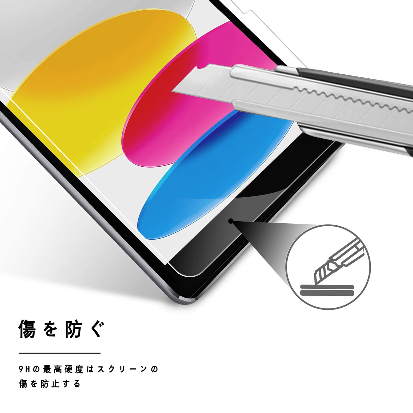 iPad 10世代 ガラスフィルム 【2枚入り】2022 10.9インチ iPad 10世代 フィルム iPad 10 ガラスフィルム アイパッド 第10世代液晶保護フィルム 強化ガラス 高透過率 撥水撥油 強靭9H 飛散防止 指紋防止 気泡防止 iPad10保護フィルム