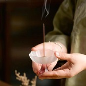 お香立て 線香立て【琉璃ガラス製・おしゃれな線香香立て】香皿 香炉 香立 お香置き 灰こぼれない インセンスホルダー シンプルデザイン 瞑想、ヨガ、読書などに対応 幅広い使い方 (透明な紫)