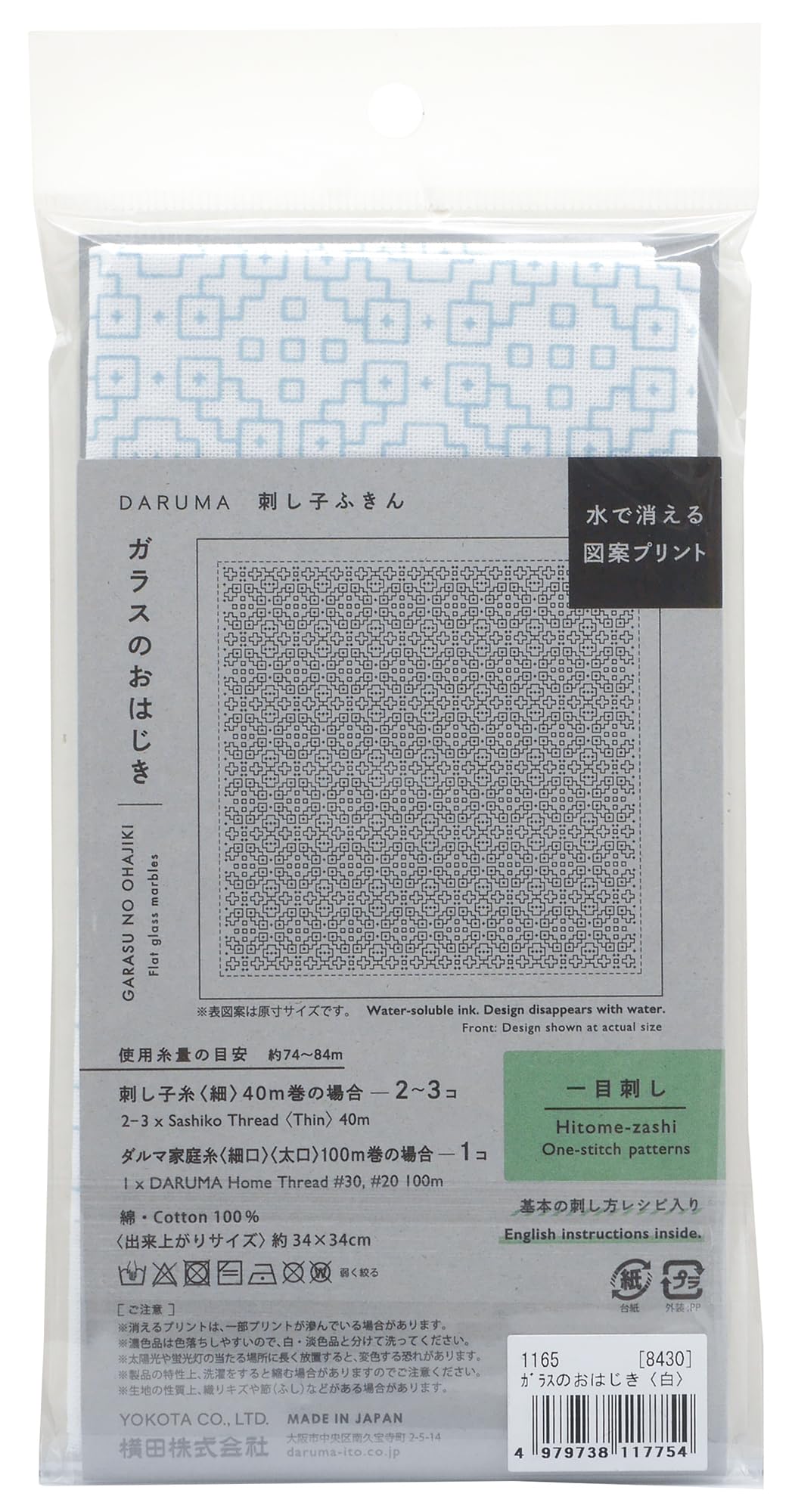 DARUMA 刺し子ふきん 一目刺し 白 No.1165 ガラスのおはじき 出来上がりサイズ:約34cm×34cm 01-8430