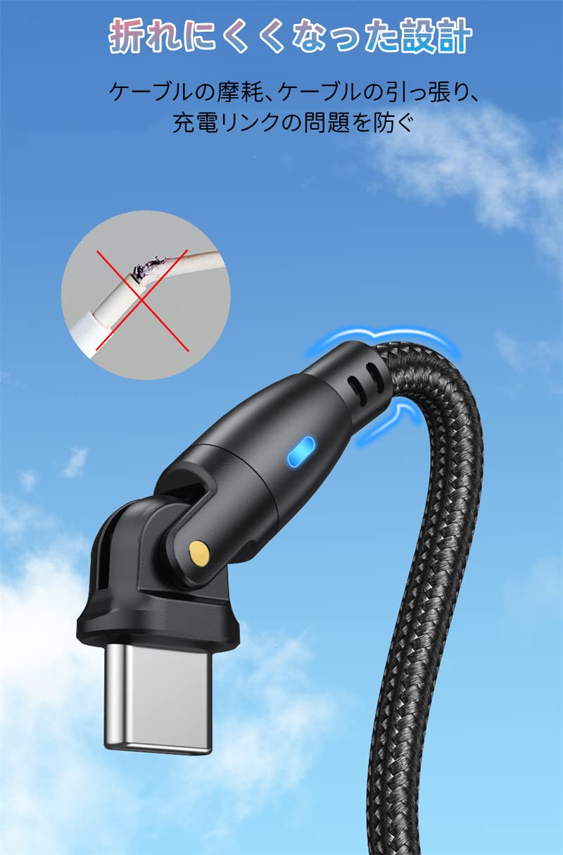1.【180°回転可能デザイン&安全性が抜群】USB Type-A to micro b充電ケーブルは「L型+180°回転」の最新設計を採用している。このケーブルは室内、オフィス、デート、車の運転、ゲームなどで使用でき、Micro-Bモデルの製品を充電する際に、充電ケーブルの角度を自由に調節することができ、非常に便利です。