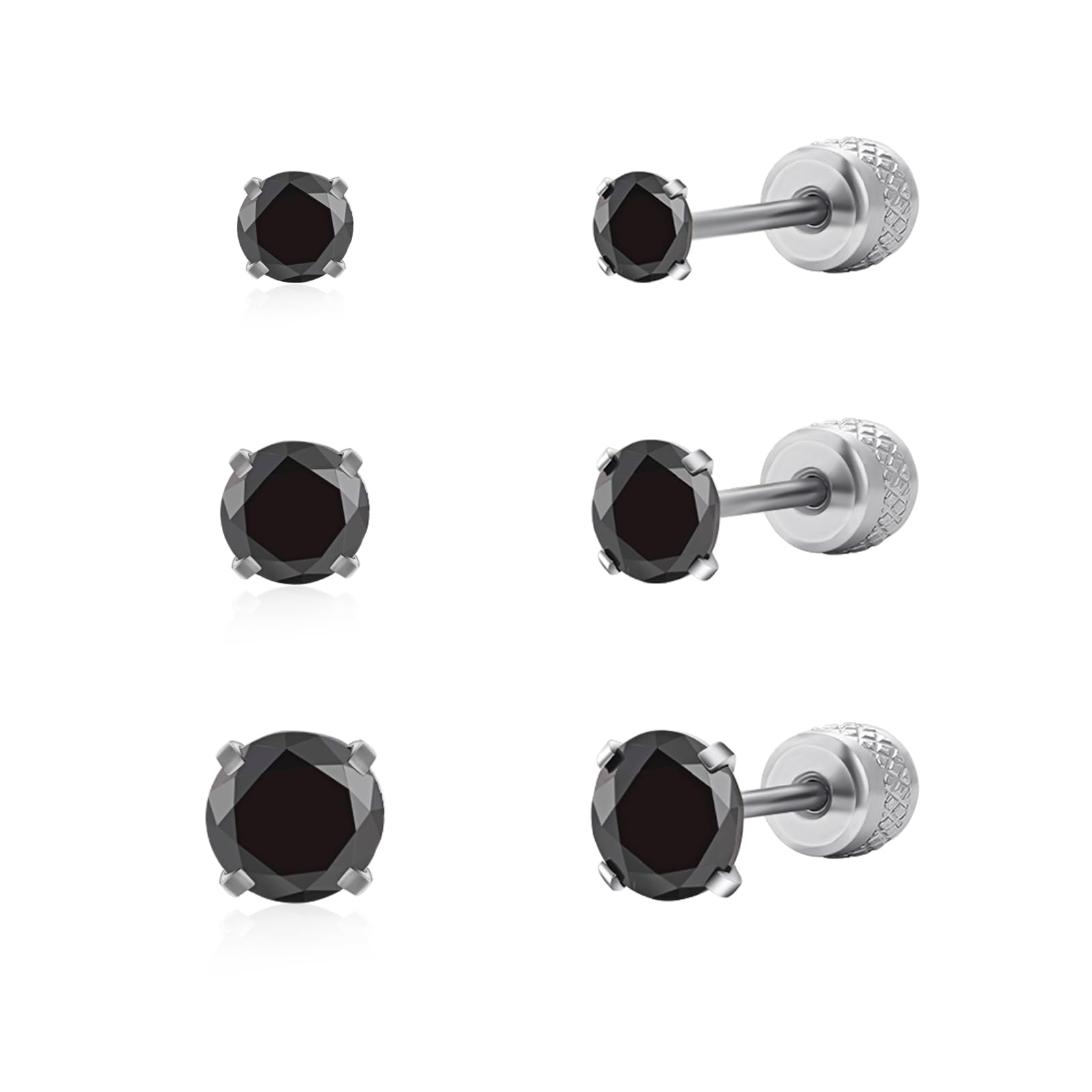 【製品仕様】6個入。カーラ:ブラック。ピアスポストの長さ:8mm、ポストの太さ:20g(0.8mm)。キュービックジルコニアの直径:3mm.4mm.5mm。素材:サージカルステンレス、ジルコニア、国際標準925シルバー。付属品:精美な包装ケース。