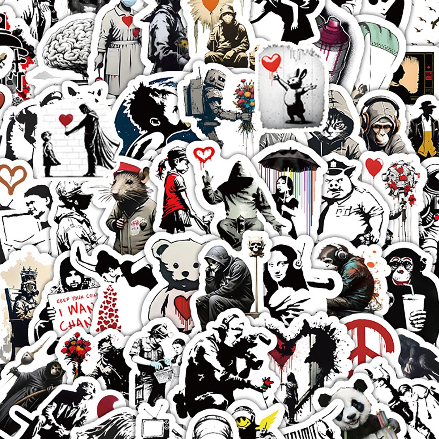 100枚 バンクシー ステッカーセット おしゃれ アート グラフィティ シール 防水デカール ギター 車 自転車 水筒 ヘルメット 携帯ノート スーツケース 装飾 日記 文房具 ギフト 誕生日 プレゼント 贈り物