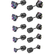 チタン スタッド ピアス セット 5 ペアのセット販売です。ポストの長さは6mmで、厚い耳たぶにもフィットします。ジルコニアのサイズは2/3/4/5/6mmです。ブライトカット CZ は、より印象的な外観のために大きなスタッドが必要な方に特に適しています。女性、男性、女の子向けの低刺激性ピアスセットで、敏感な耳に最適です。