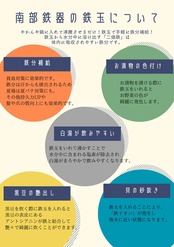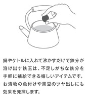 お漬物の色付け、アサリの砂抜き、黒豆の艶出し、お鍋・ケトルに入れて沸かすことで鉄分も抽出される