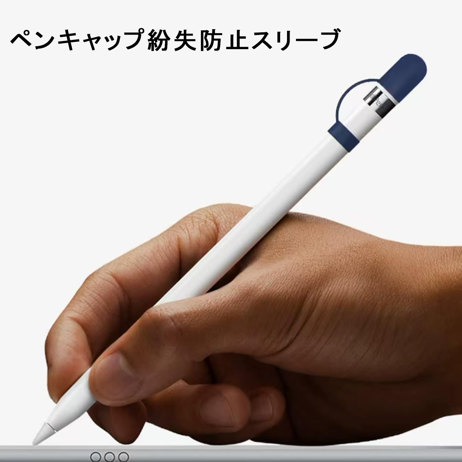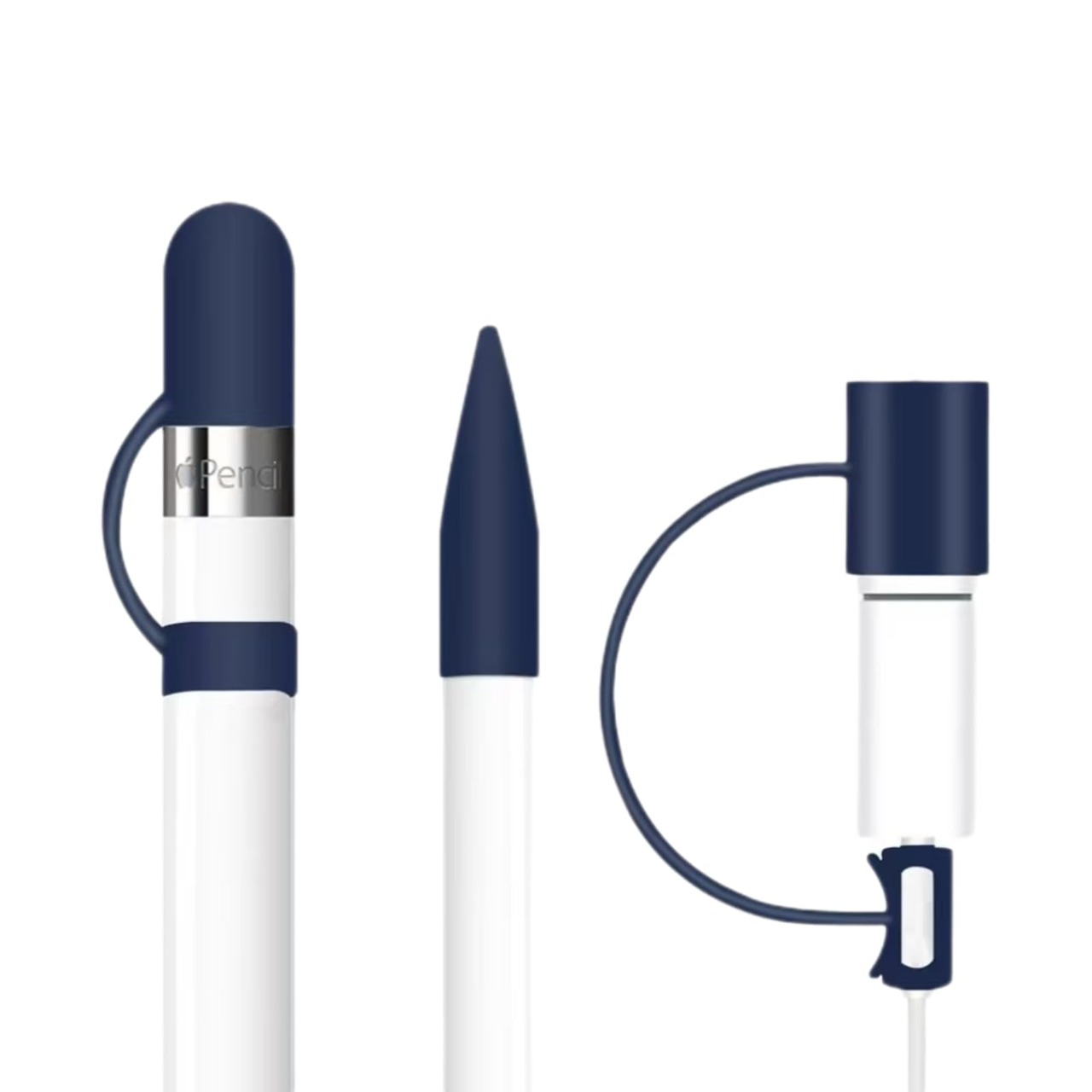 Apple Pencil 第1世代用シリコン保護ケース 交換用キャップ 充電アダプタ用紛失防止キャップ ペン先カバーとUSBケーブル連接カバー付き アップルペンシルシリコンキャップ 保護カバー/ホルダー 紛失防止キャップ・ホルダー タッチペン交換用 ペン先 つけペン 超薄 脱着简单 軽量 全面保護 柔らかい 滑り止め 静かな(ネイビーブルー)