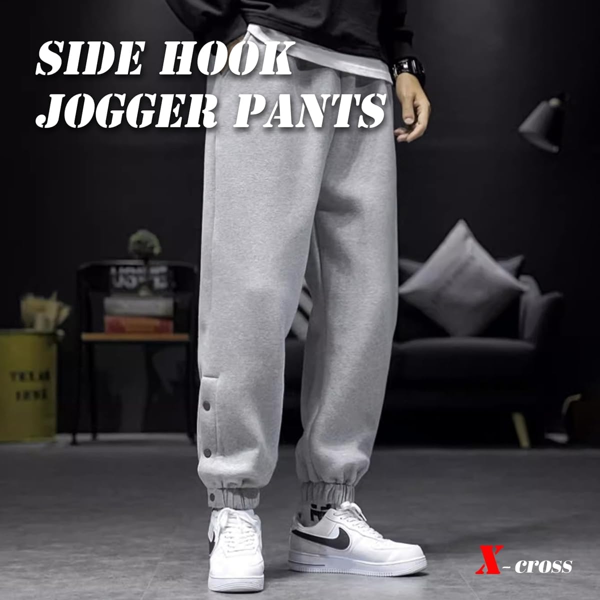 [X-cross] クロス ジョガーパンツ サイドホック メンズ カジュアル ウエストゴム 薄手 ドローコード ルームウェア