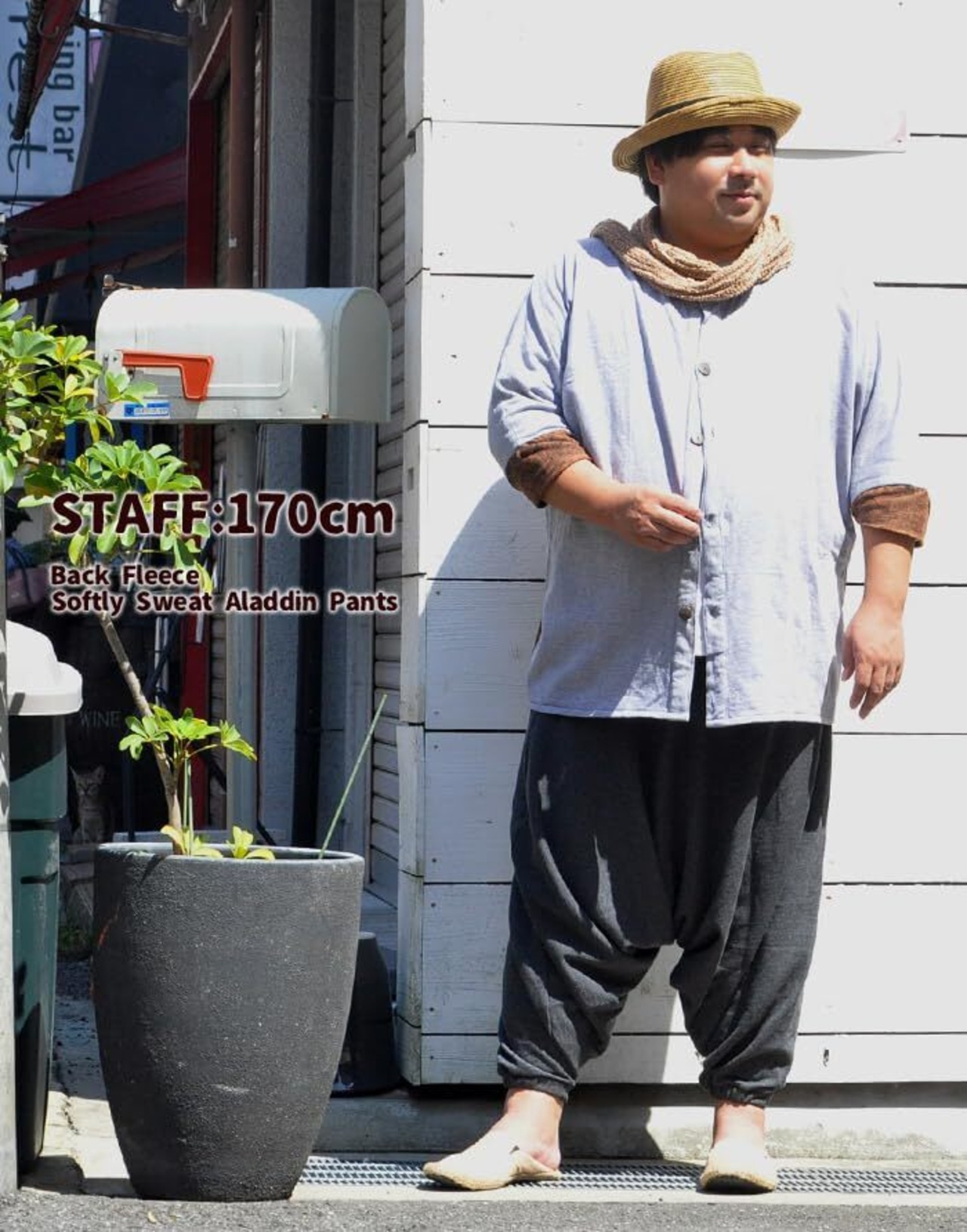 【快適な着用感】ゆったりとしたサルエルパンツのシルエットは動きやすく、フィット感がありながらもリラックスした着用感を実現。男女兼用で、どなたでもお楽しみいただけます。