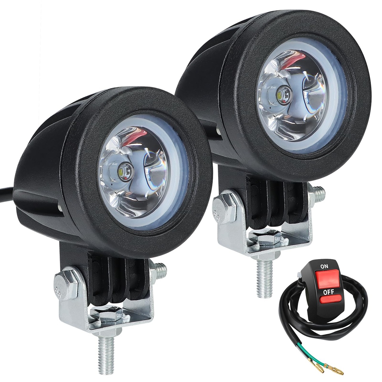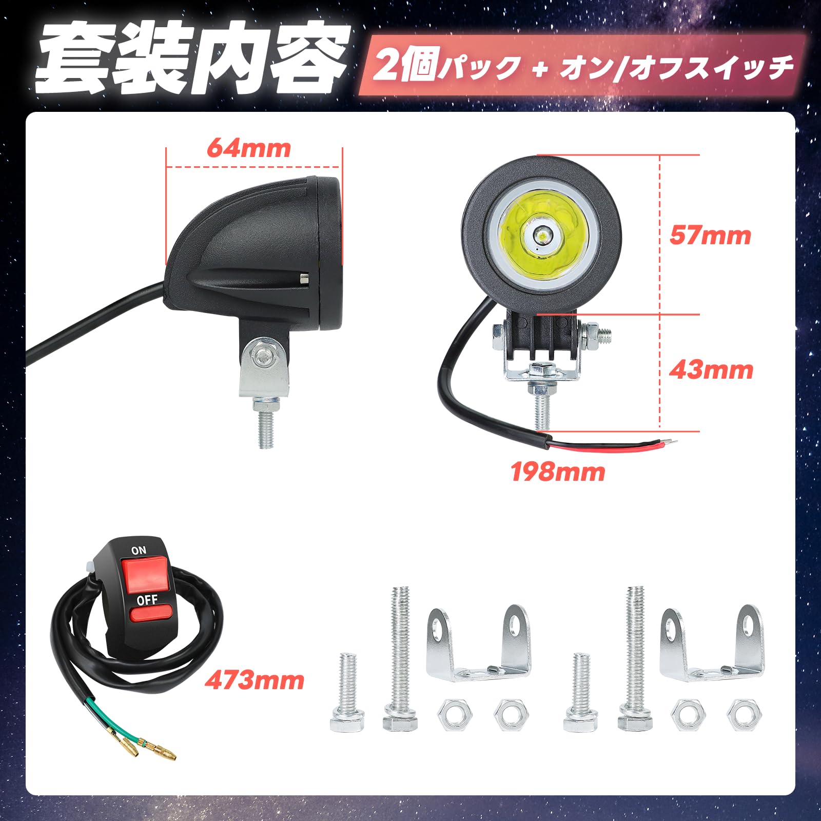 汎用 2個 スポット ライト LED作業灯 12V 24V 小型 汎用 セット バイク CREE 丸型 ヘッドライト フォグランプ ワークライト 防水 ホワイト 白 10W オートバイ/機械/自動車/トラック用品 汎用 車外灯 スイッチ付き