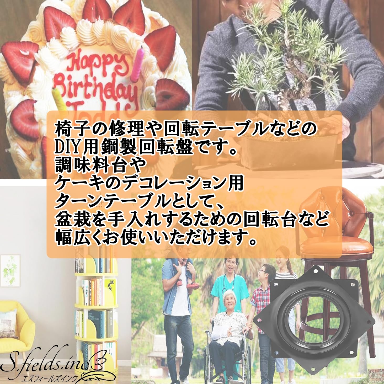 調味料台やケーキのデコレーション用ターンテーブルとして、盆栽を手入れするための回転台など幅広くお使いいただけます。