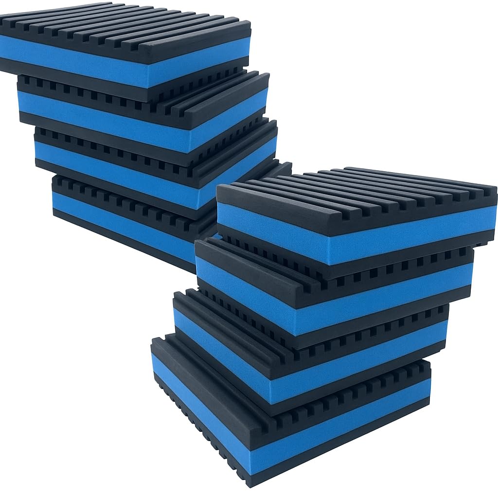 高密度のゴム素材で作られた防振マット8個セットは、エアコン室外機や洗濯機、3Dプリンターなど複数の機器に同時対応。振動をしっかり吸収し、階下への騒音を抑えます。ベランダや室内での静音対策に最適です。