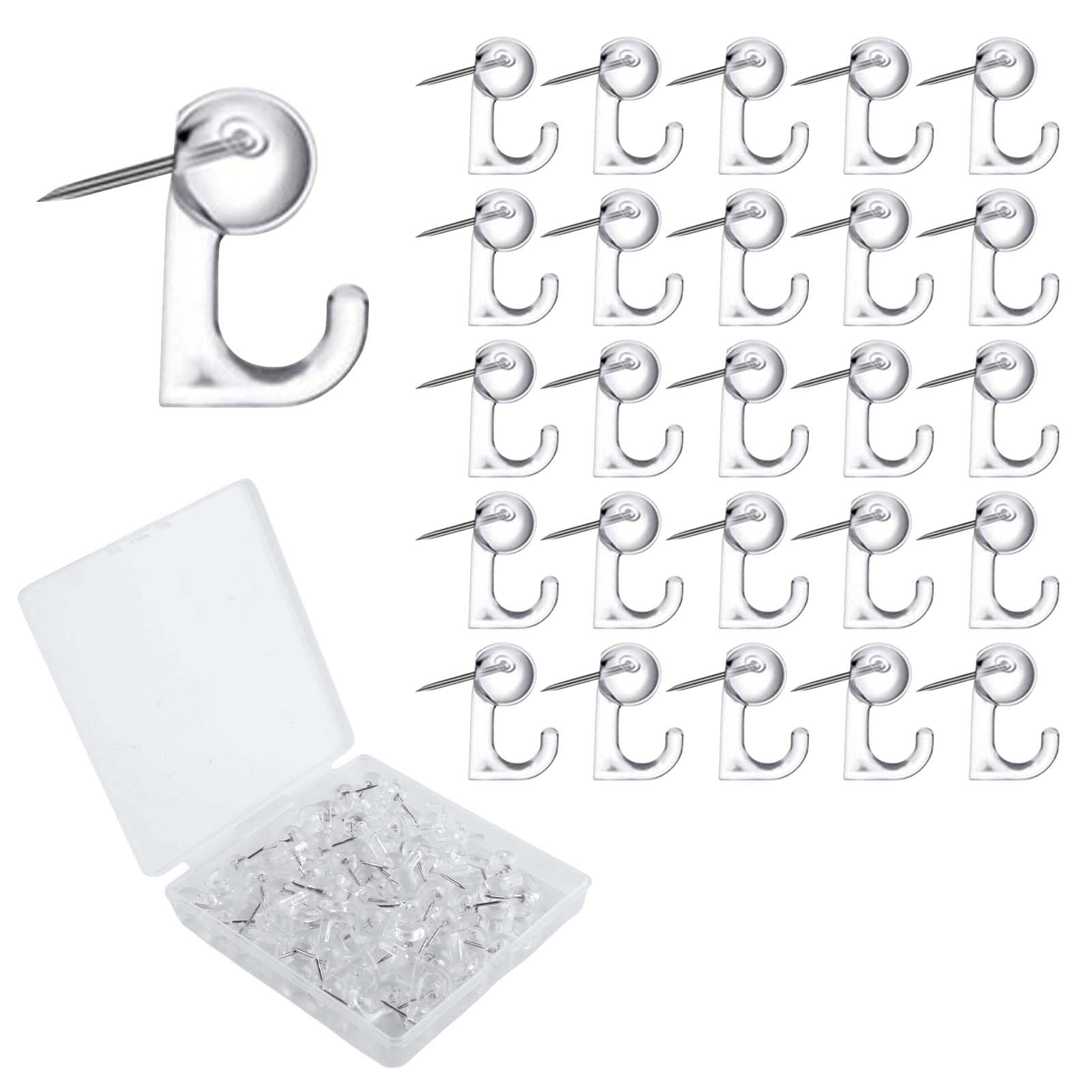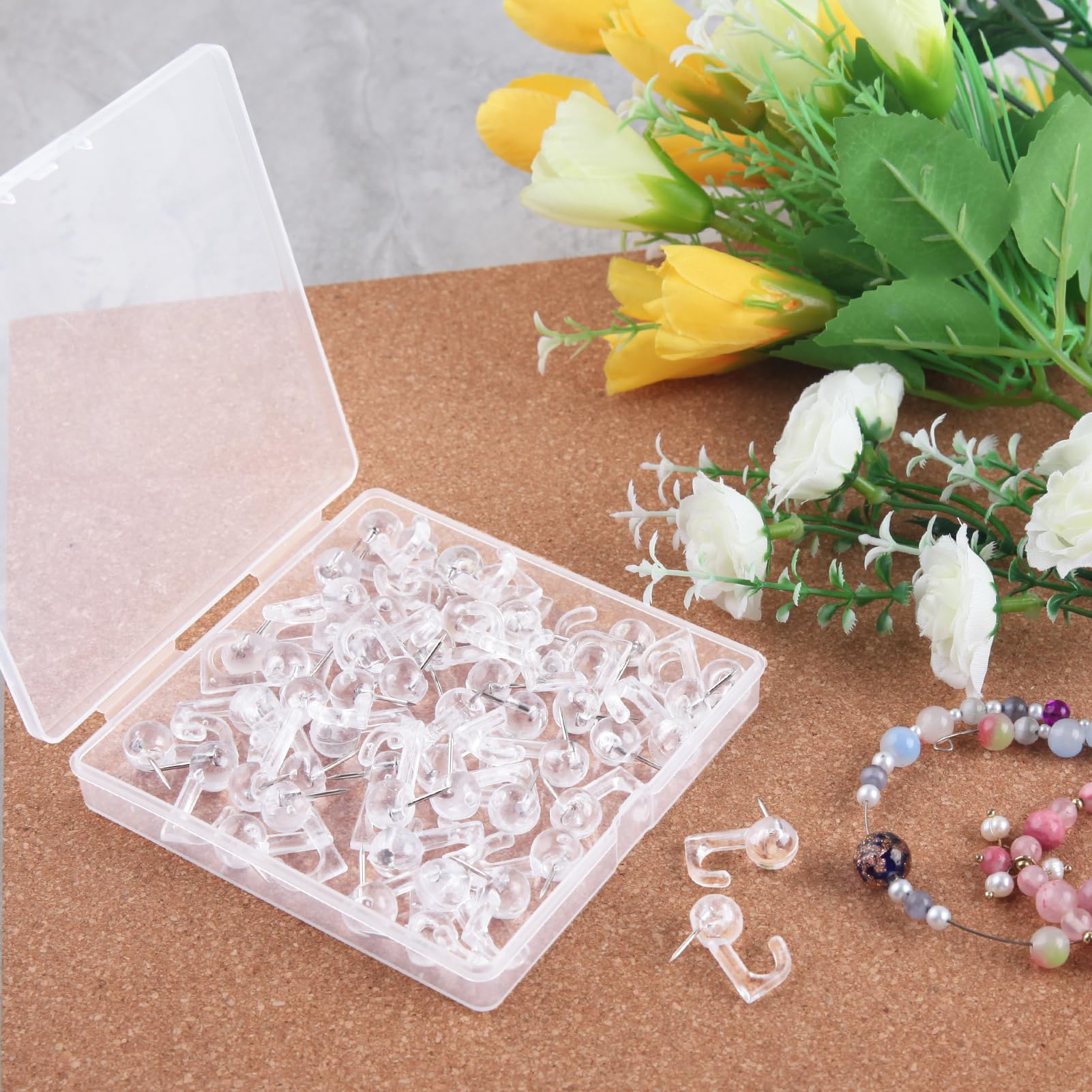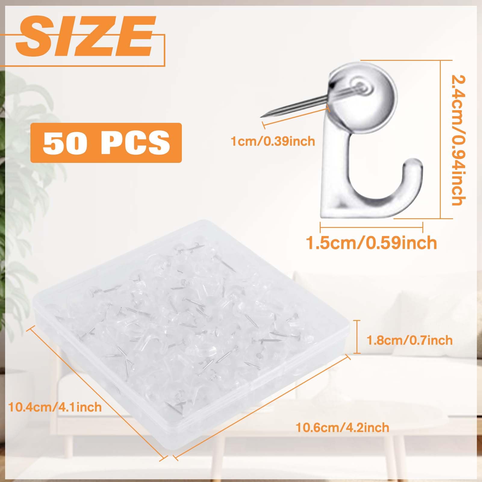 パッケージ内容:透明なプラスチック製のプッシュピンフック50個で、日常の使用と交換に十分です。持ち運びや整理が簡単な携帯用透明収納ボックスが付属しています