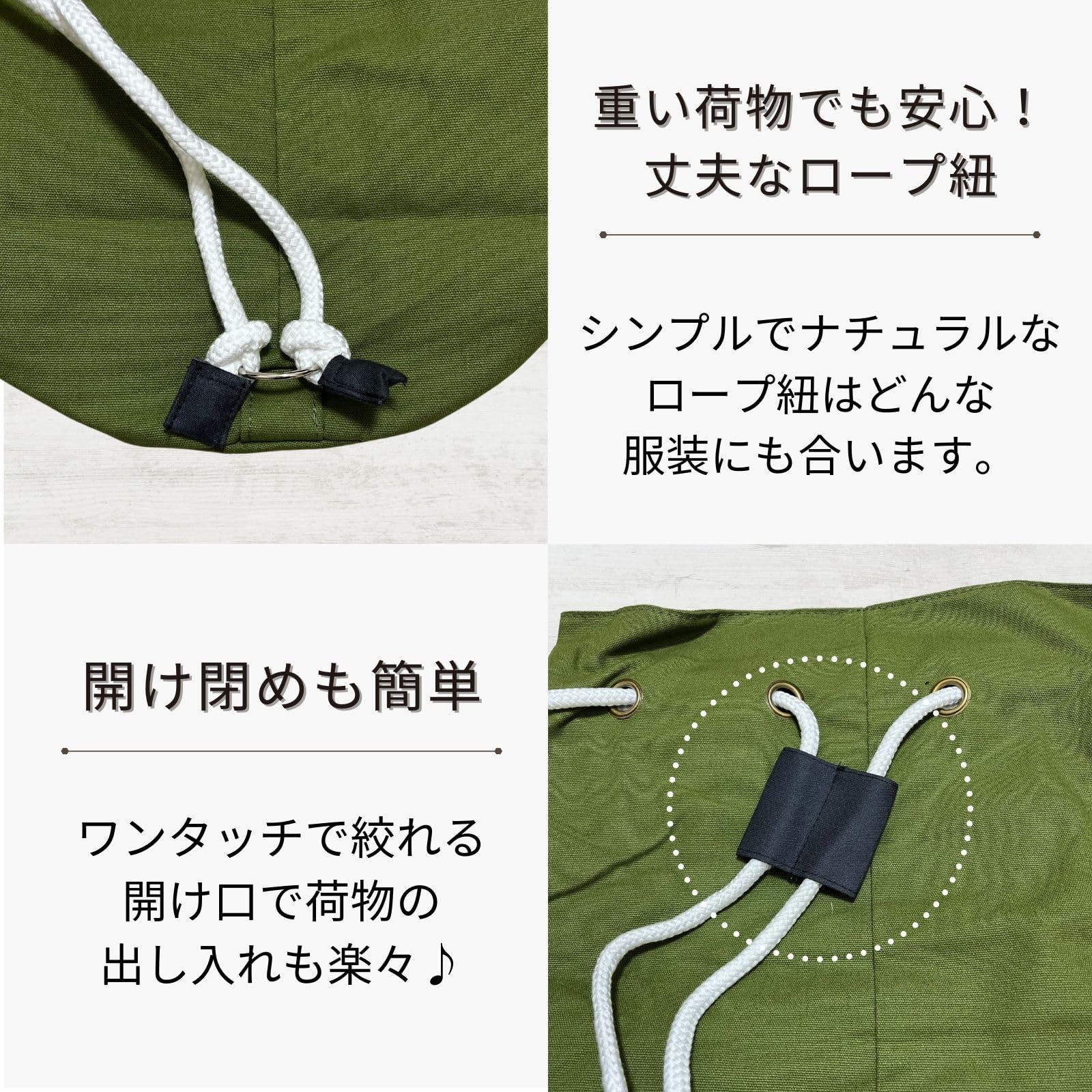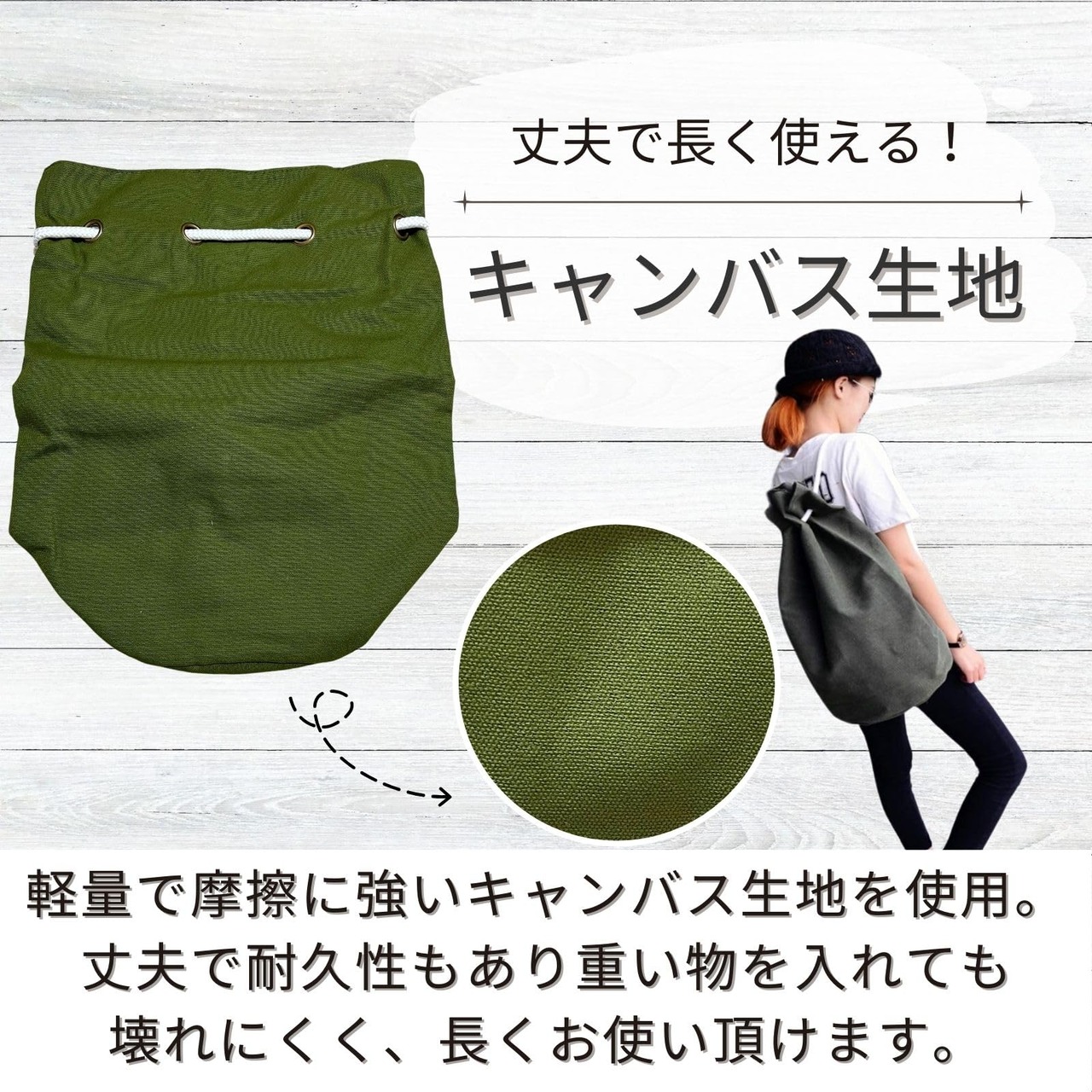 軽量で摩擦に強いキャンバス生地を使用。 丈夫で耐久性もあり壊れにくく、長くお使い頂けます。リュックとしても肩掛けとしても使え、ロープ紐は頑丈で重い物も安心です。