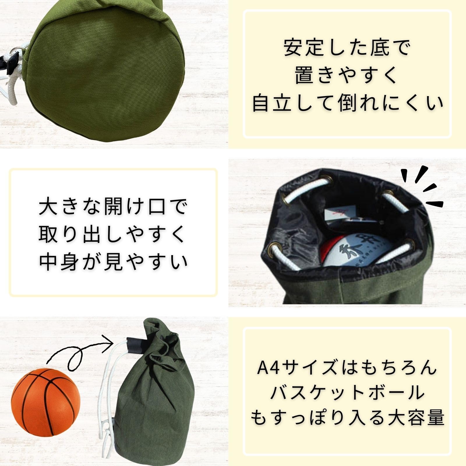 A4サイズはもちろん、バスケットボールもすっぽり入る大容量サイズ!安定した底で置きやすく、倒れにくく自立します。開け口は中身が見やすく取り出しやすい大きな開け口で、ワンタッチで絞れて開け閉めも簡単!