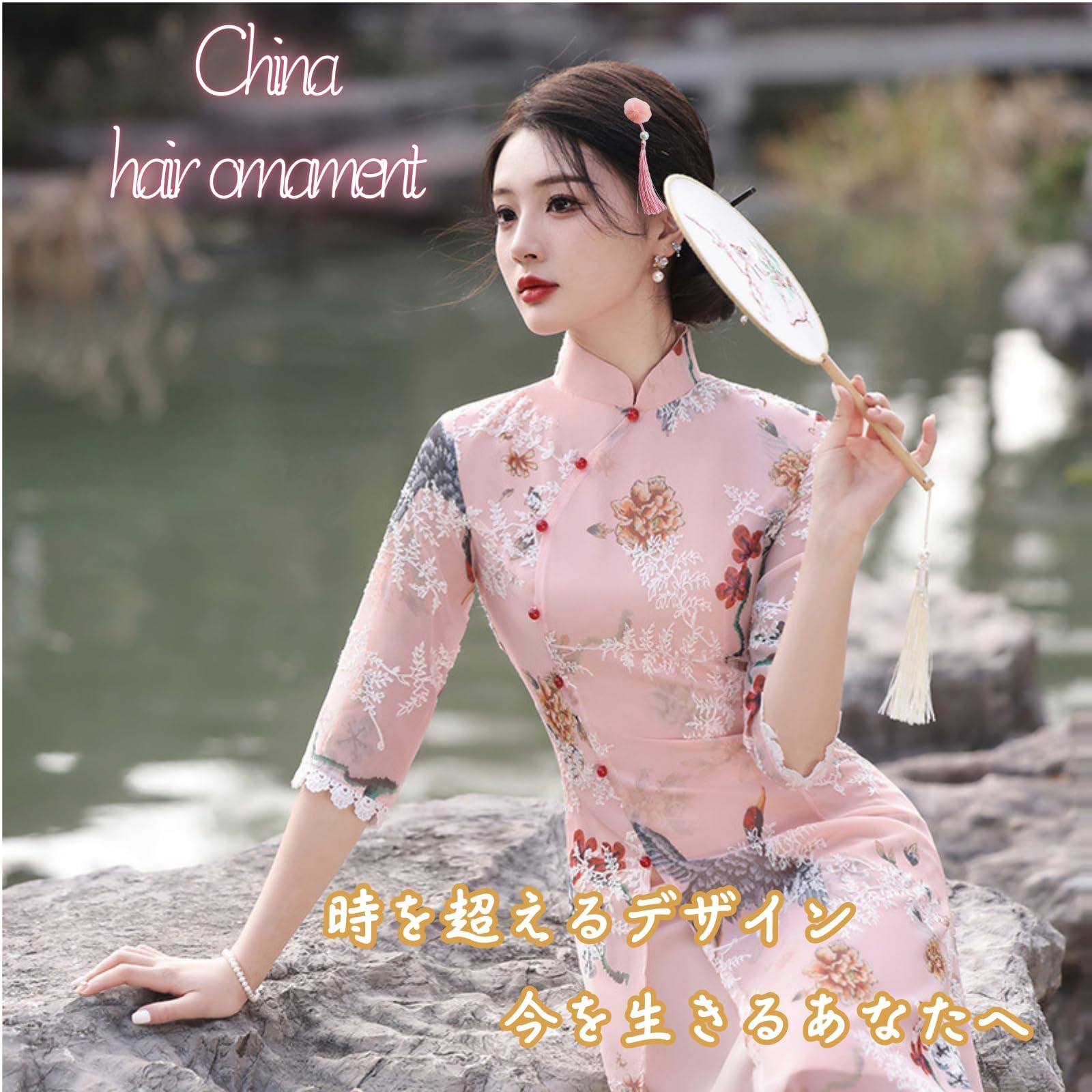 チャイナ 髪飾り お団子カバー チャイナ ヘアアクセ チャイナお団子(小) (桃)