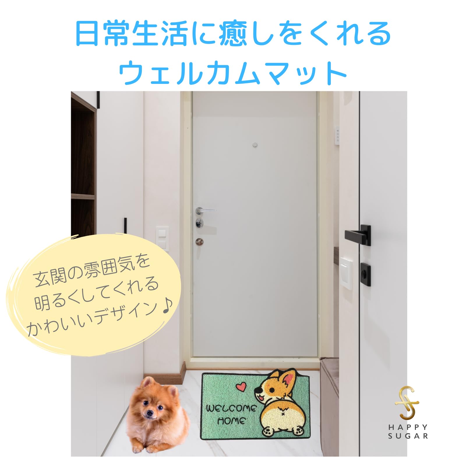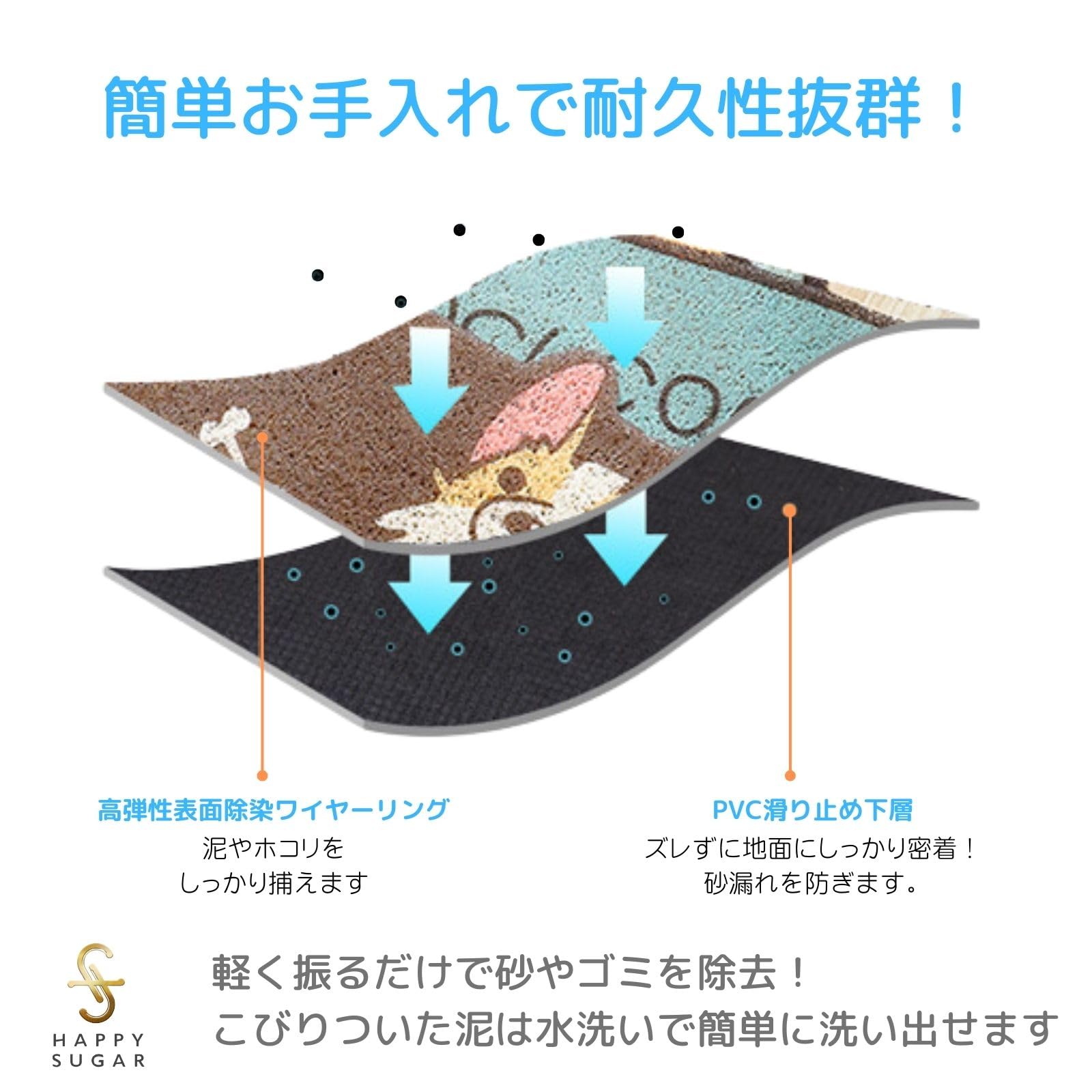 HAPPY SUGAR 玄関マット ウェルカムマット ドアマット かわいい 犬 猫 デザイン おしゃれ ワンちゃん ニャンコ 屋外 室内 40×60cm (ブラック_犬)