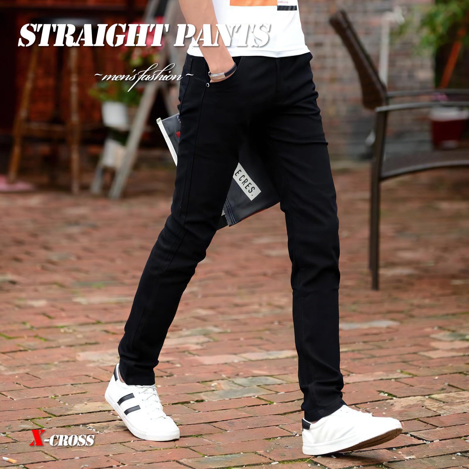 [X-cross] クロス カジュアルパンツ メンズ ストレート 裾上げ済み ロング アウトドア ビジネス シンプル