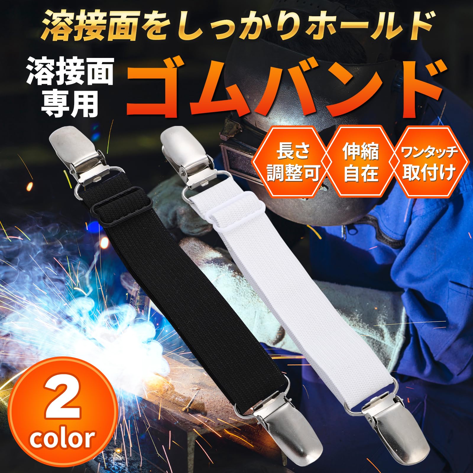 【溶接作業をもっと快適に!】頭にぴったりフィットする、溶接面専用ゴムバンドです。弾力性の高いのゴム紐素材が、長時間装着しても疲れにくい快適な装着感を実現。バックル調整とワンタッチホックで簡単かつしっかりと取り付けできます。