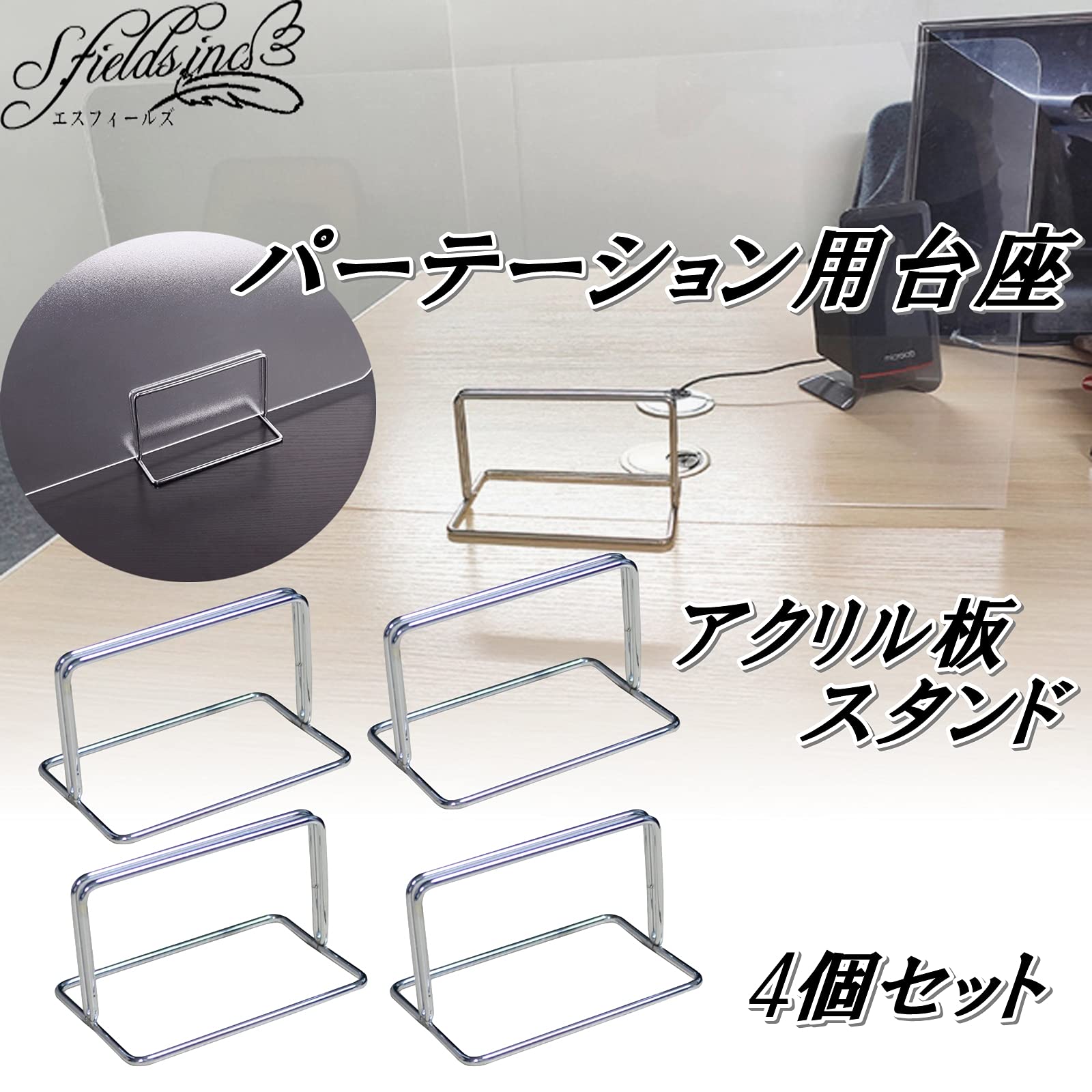 S.fields.inc パーテーション 台座のみ ついたてスタンド 4個 6個セット パネルスタンド メニュースタンド ステンレス (6個セット)