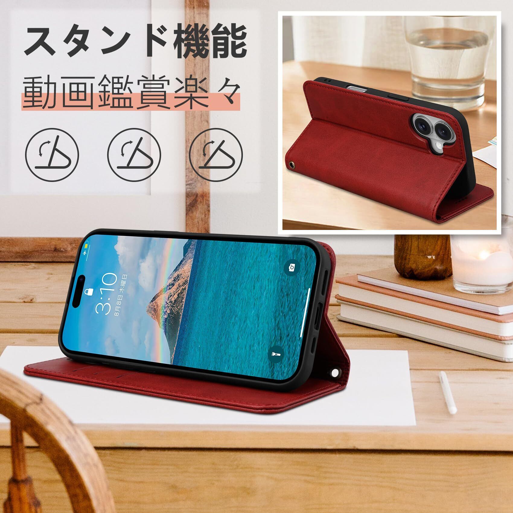 Rssviss iPhone 16 用 ケース 手帳型 iPhone 16 専用 手帳型ケース マグネット式 iPhone16 専用 ケース 手帳型 カード収納 いphone 16 用 手帳型 ケース スタンド機能 iPhone 16 用 手帳ケース 軽量 iPhone 16 専用 ケース アイフォン 16 用 ケース 手帳型 アイホン16用 ケース 手帳型 6.1インチ W1 レッド
