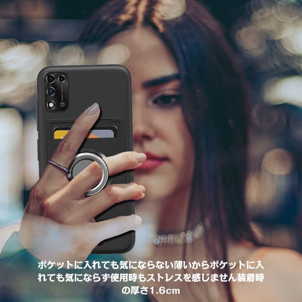 ZTE Libero 5G III ケース A202ZT リング付き シリコン 背面 カード収納 リベロ5g 3 ケース スタンド機能 360°回転リング 耐衝撃 耐久 滑り止め 黑