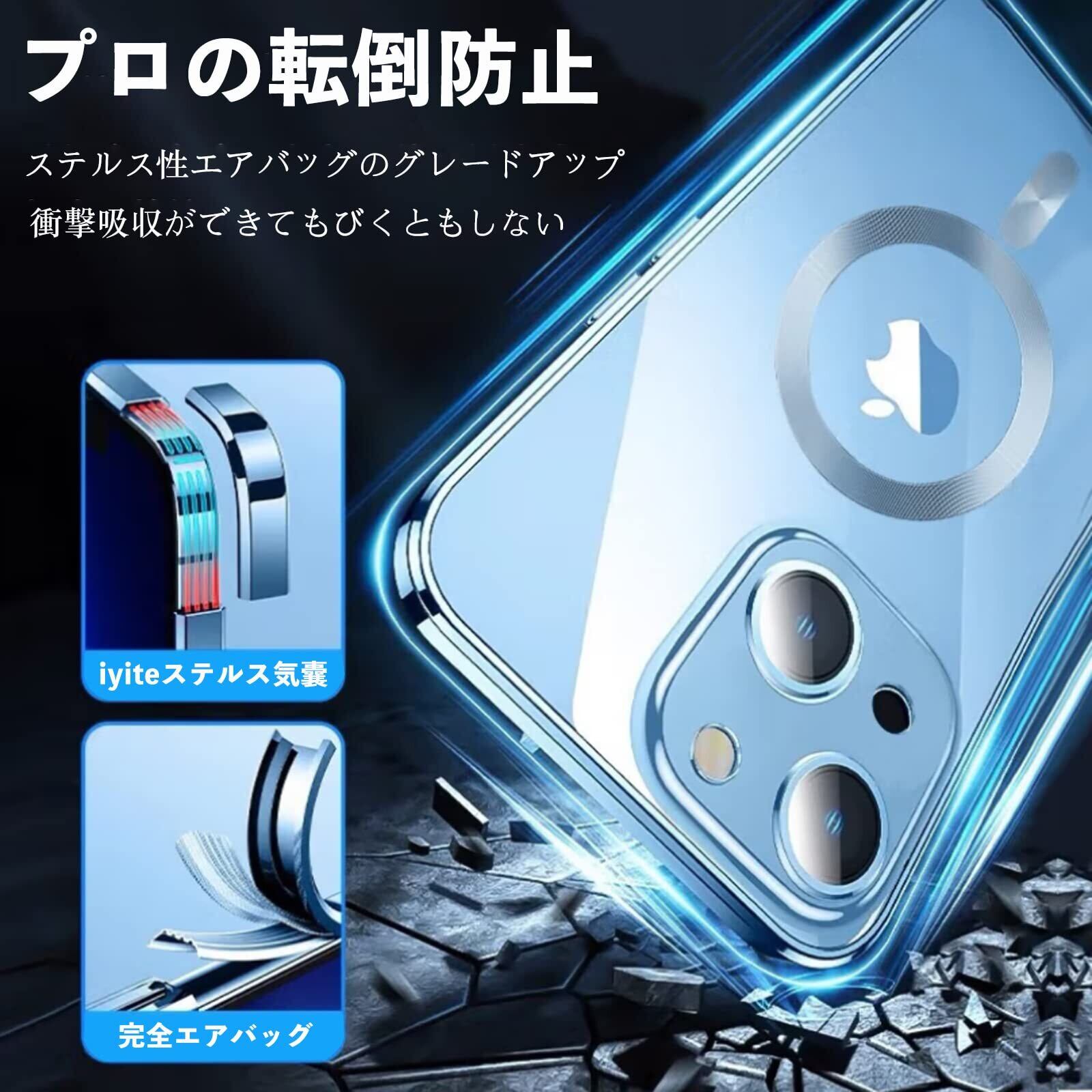 iyite iPhone 13 Pro ケース ハイブリッドケース HaloLock付き MagSafe対応 磁気充電 iphone13プロケース アップグレードされた電気メッキの ソフトシェル 米軍MIL規格 SGS認証 衝撃保護 傷に強い背面 クリア 黄変しにくい ストラップホール付き 6.1インチ ブルー