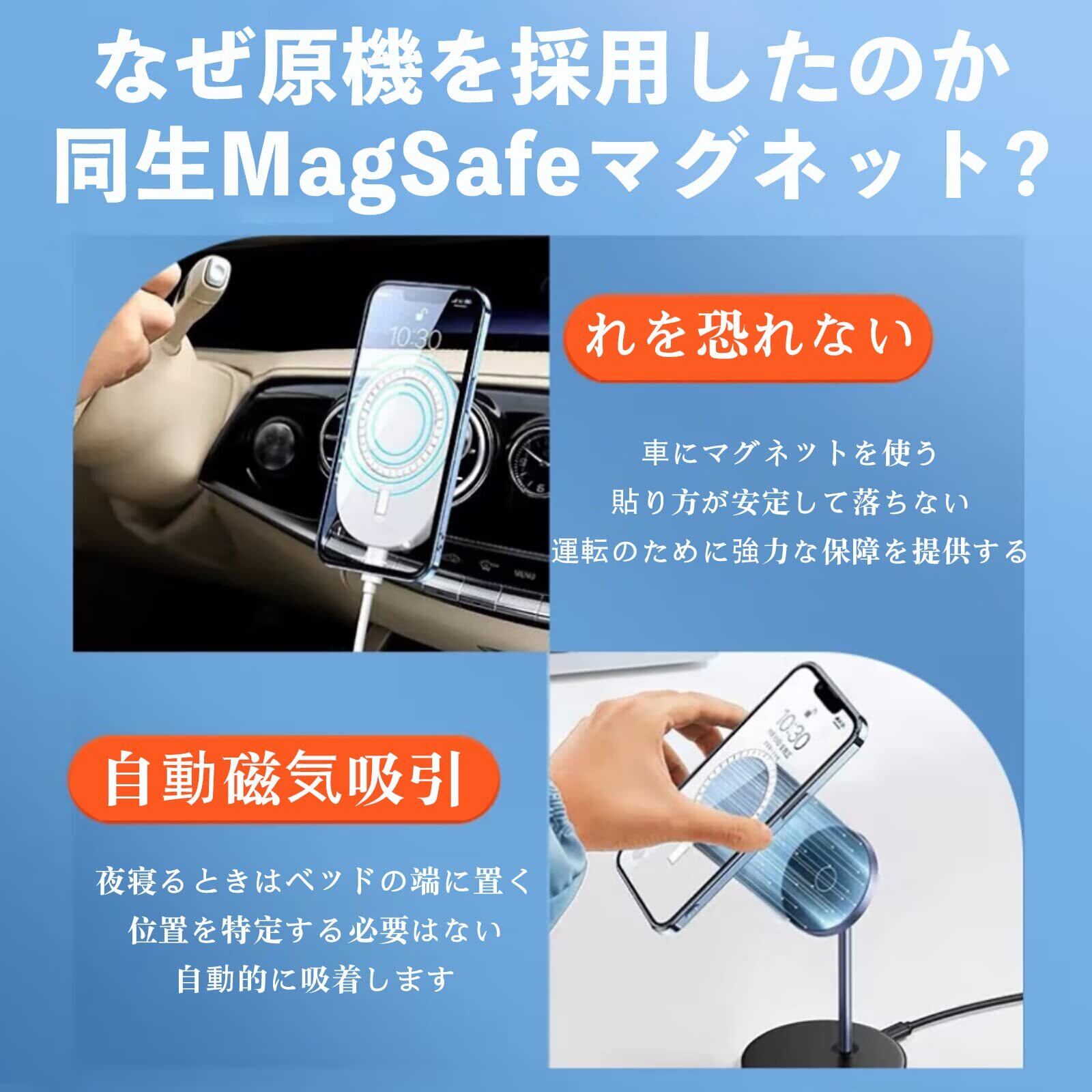 magsafeは磁力が強い。ケースに取り付けた際も簡単には取れにくそうであり、安心感があった。iphone 14 pro maxでmagsafeを使用したかった。背面がポリカーボネートで黄ばみにくく、iphoneの色がクリアに見える。