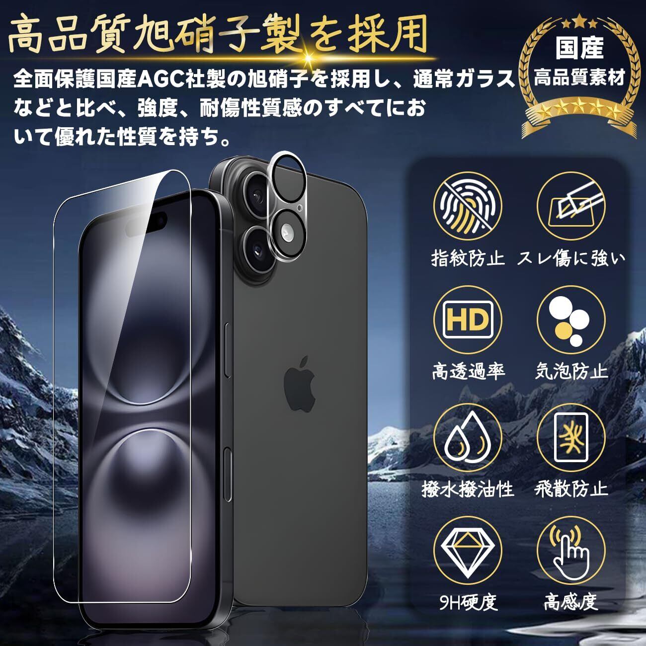 対応 iPhone 16 ガラスフィルム apple iphone16 ガイド枠付き 指紋防止 【2* フィルム + 2* レンズ保護フィルム+ 1*ガイド枠付き+ 1*取り除き発泡板】国産旭硝子材質 アイフォン16 薄型 強化ガラス iPhone16 保護フィルム 高光沢 いpほね16 液晶 ガラス ケース 9H硬度 厚さ0.26mm超薄型 高透過率 気泡なし ラウンドエッジ加工 簡単貼り付け 3D Touch対応 SENXLL-16G05